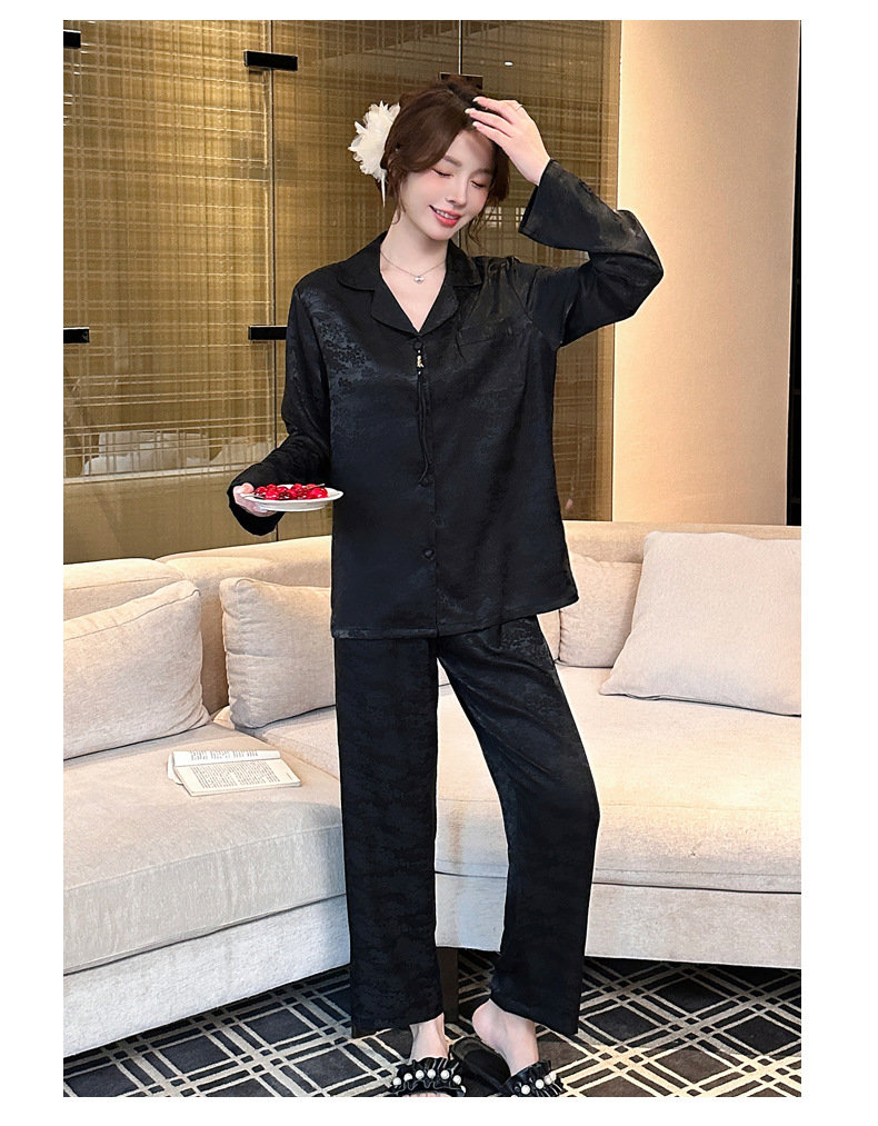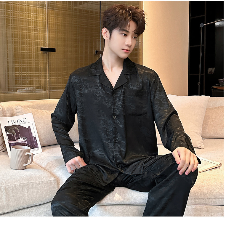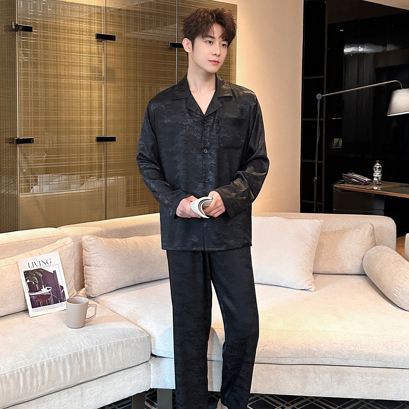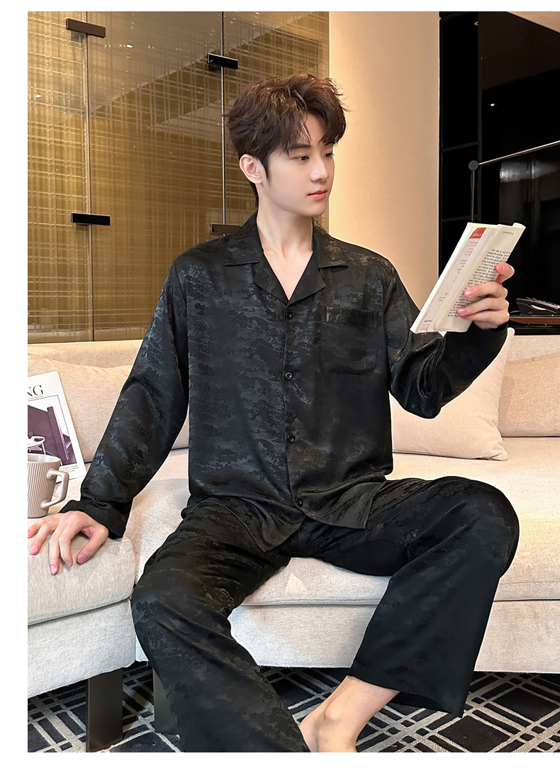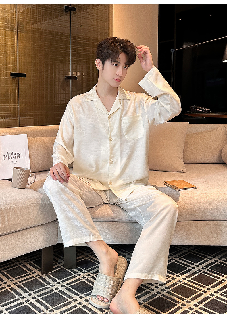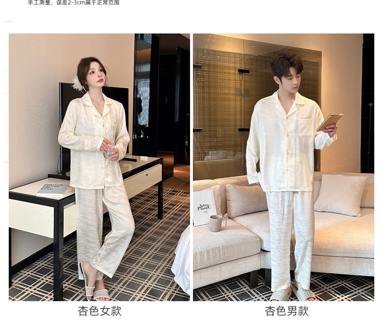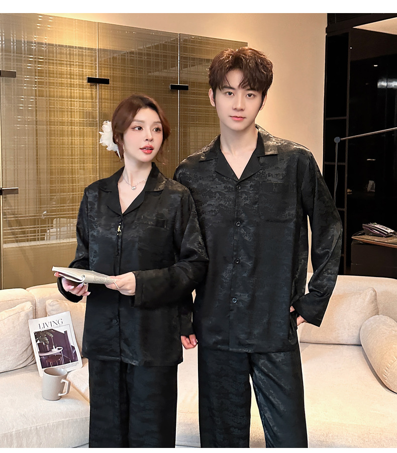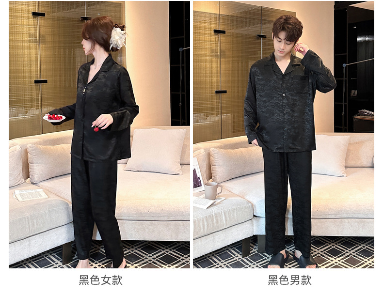 골동품 커플 잠옷 여성의 봄과 가을 새로운 자카드 하이 엔드 아이스 실크 얇은 세트 멋진 남자 홈 옷