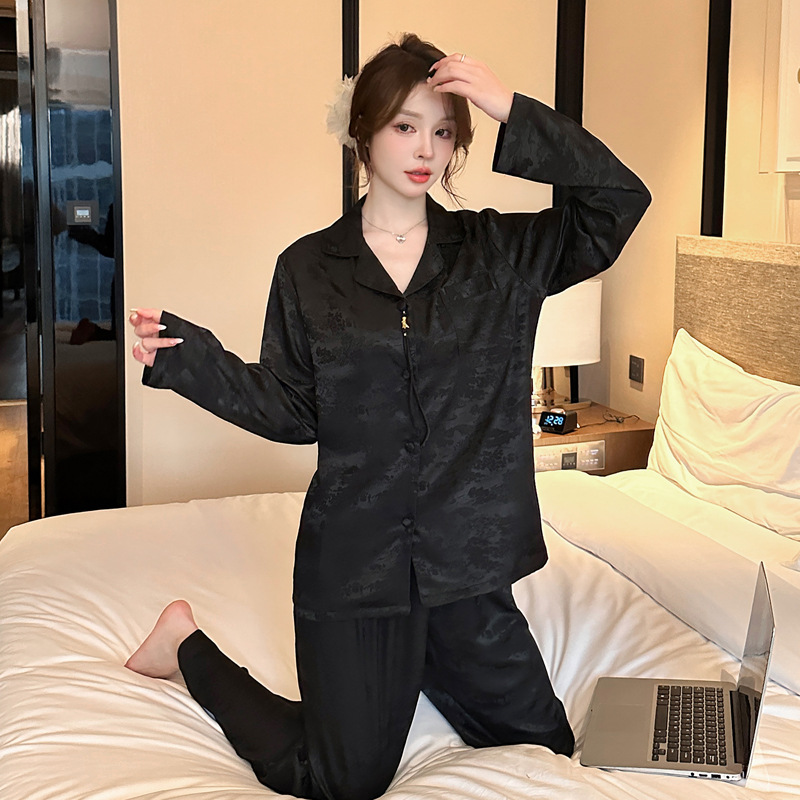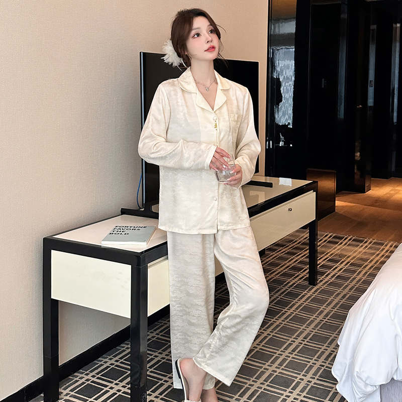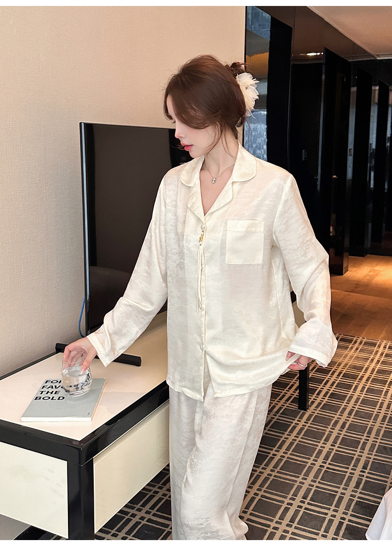 골동품 커플 잠옷 여성의 봄과 가을 새로운 자카드 하이 엔드 아이스 실크 얇은 세트 멋진 남자 홈 옷스토어 가기