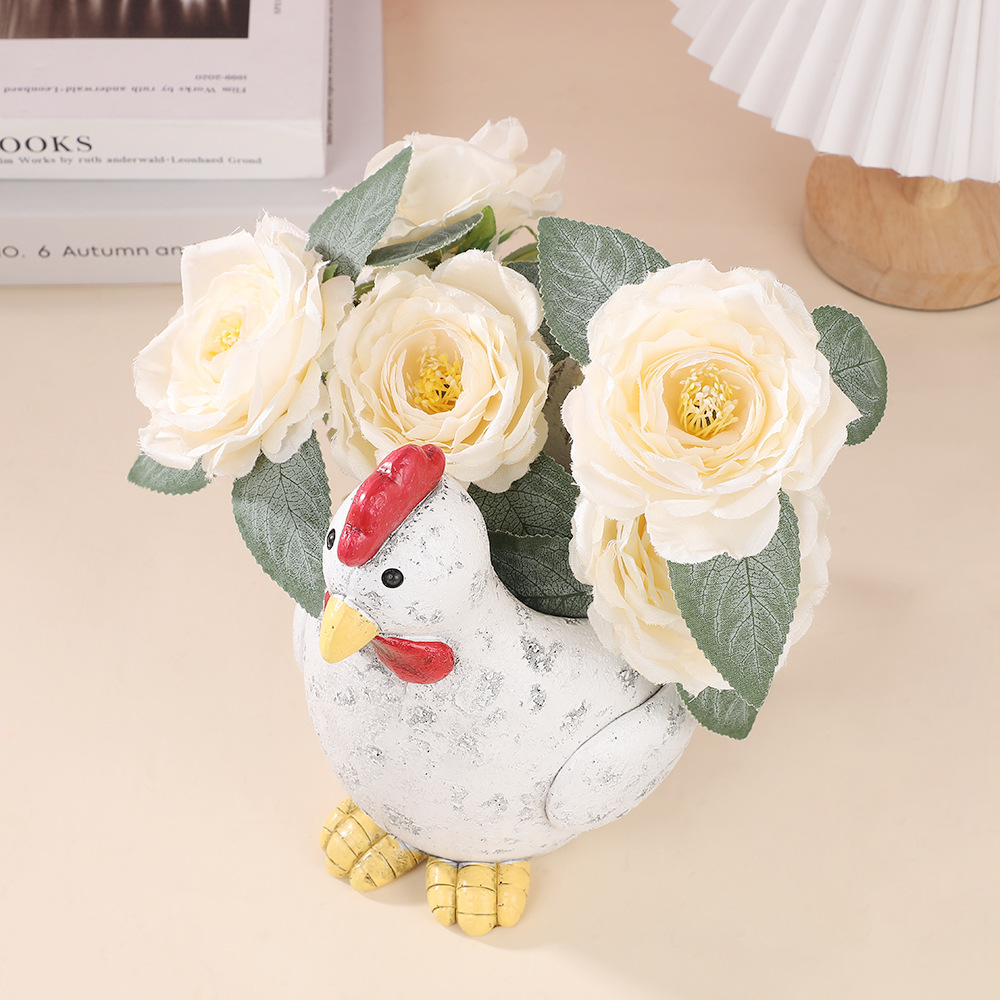 뜨거운 판매 시뮬레이션 암탉 동상 수지 홈 발코니 야외 녹색 식물 화분 장식 공예 장식품
