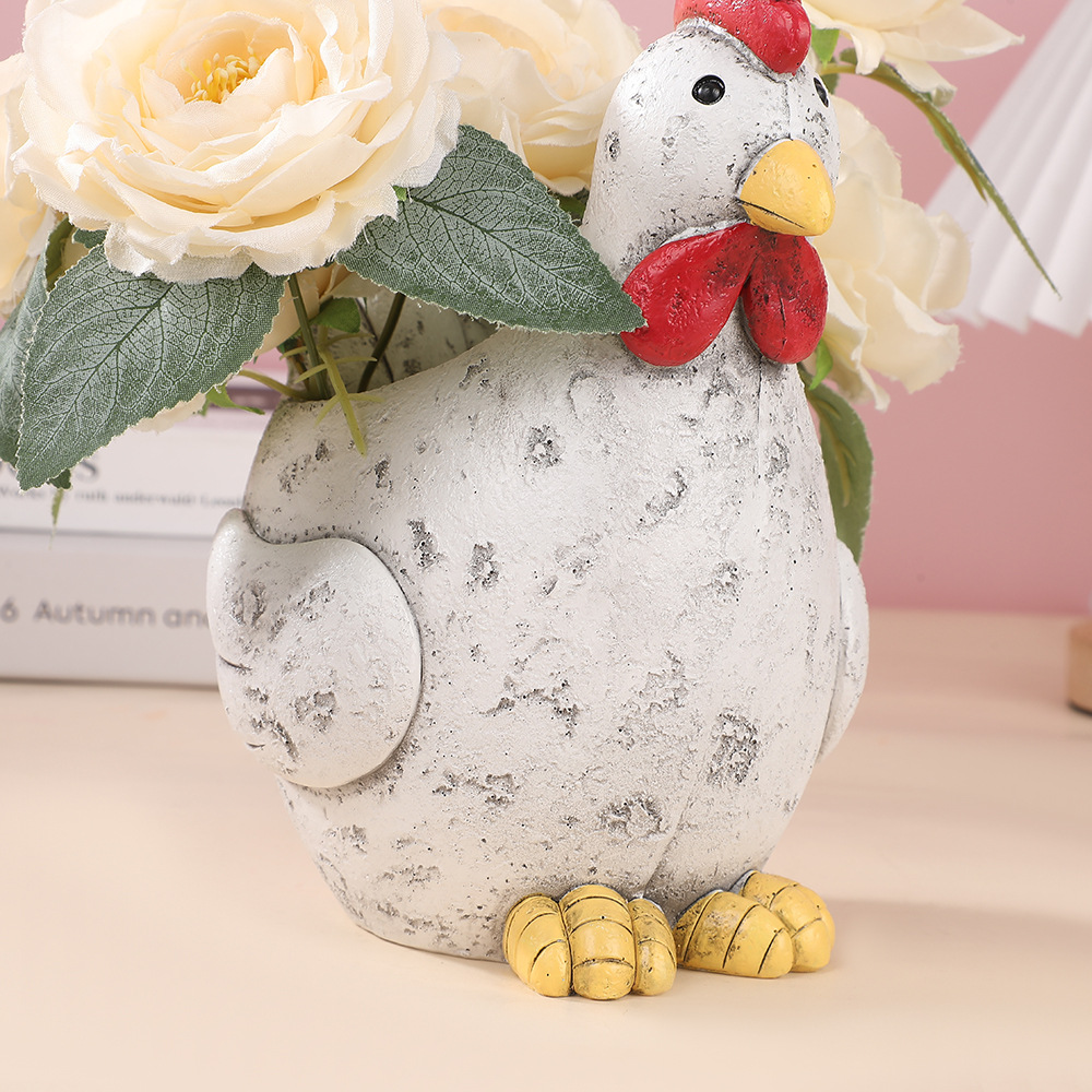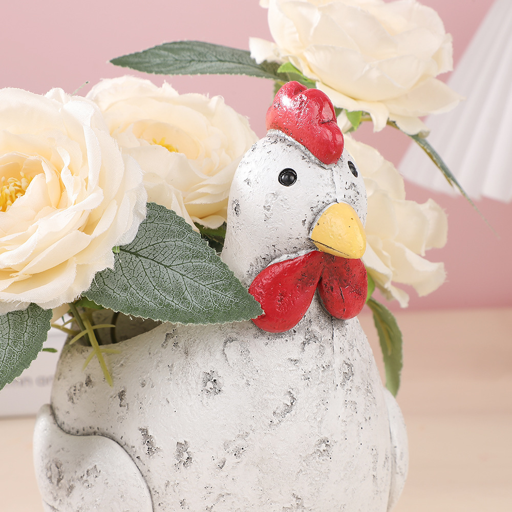 뜨거운 판매 시뮬레이션 암탉 동상 수지 홈 발코니 야외 녹색 식물 화분 장식 공예 장식품스토어 가기
