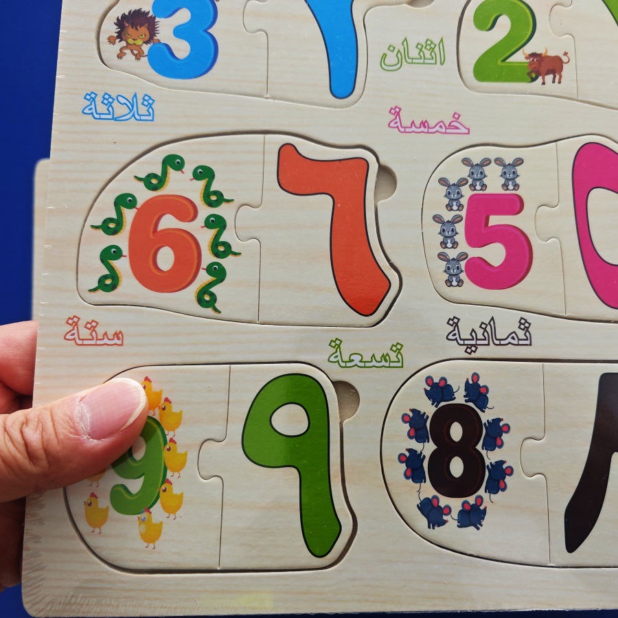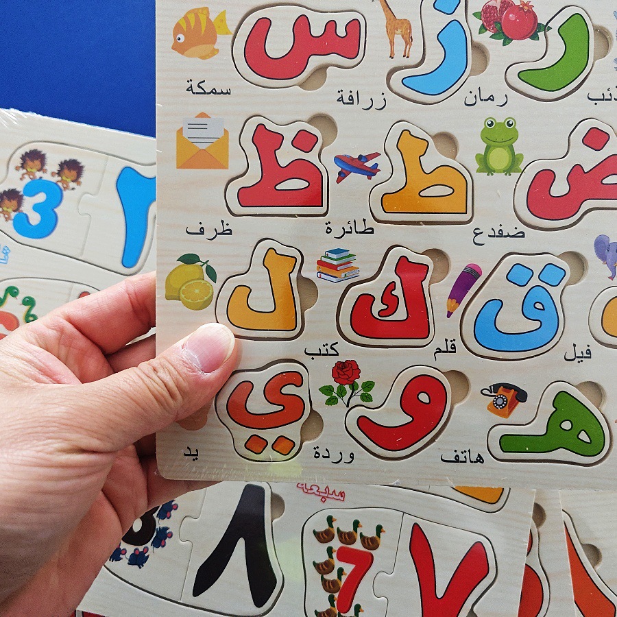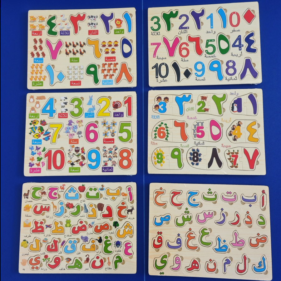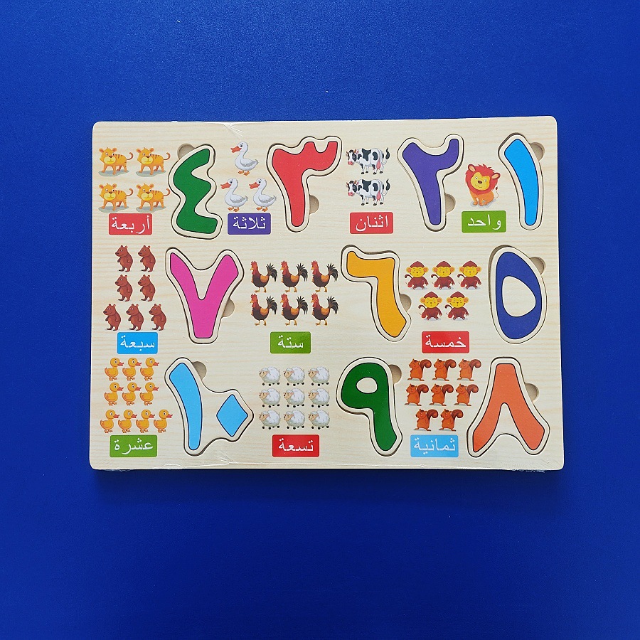 아랍어 문자 및 숫자 퍼즐 나무 교육 장난감 조기 교육인지 퍼즐 매칭 핸드 그랩 플레이트스토어 가기