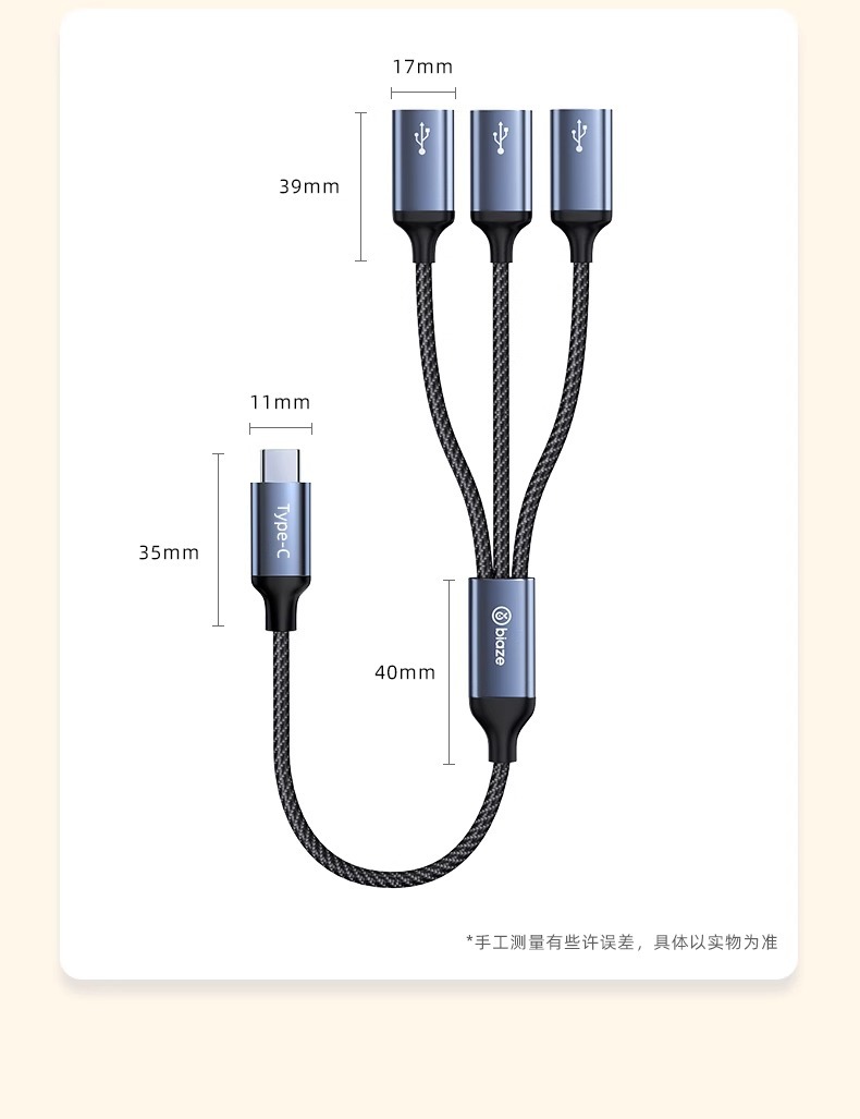 Biaz typec 1-3 멀티 인터페이스 USB 세트 분배기 연장 케이블 typec 변환기 외부 장치스토어 가기