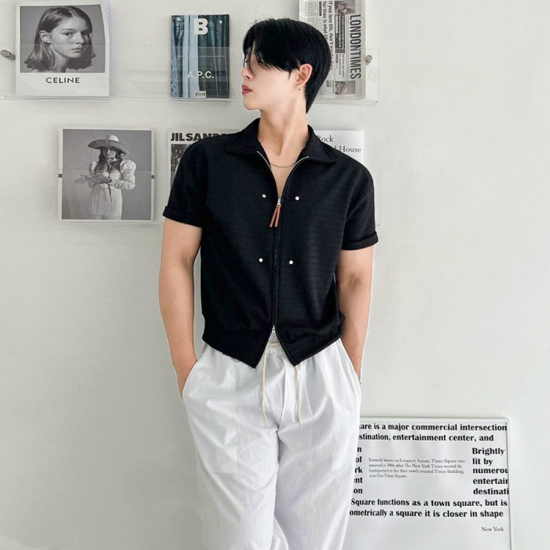 MYQ 디자인 센스 짧은 소매 셔츠 남자의 여름 느슨한 캐주얼 셔츠 한국 스타일 트렌디 니쉬 옷깃스토어 가기