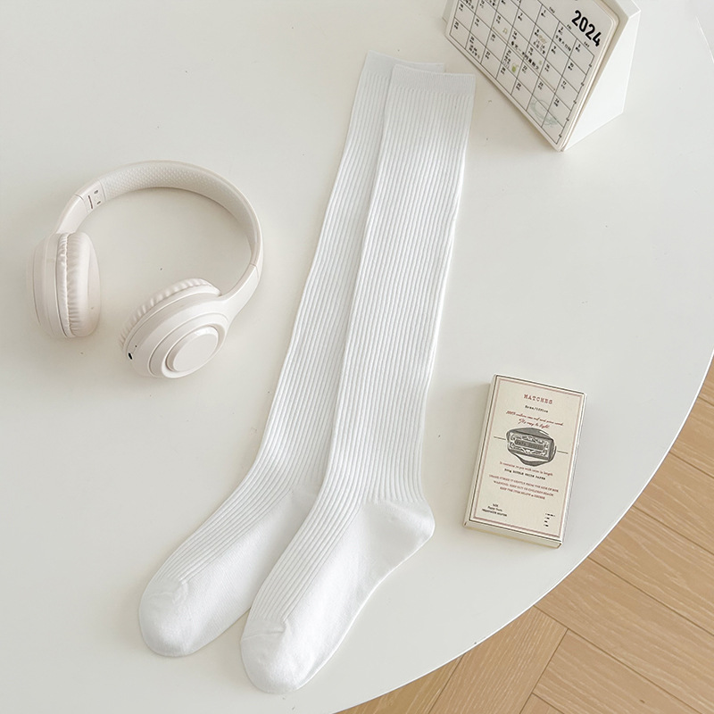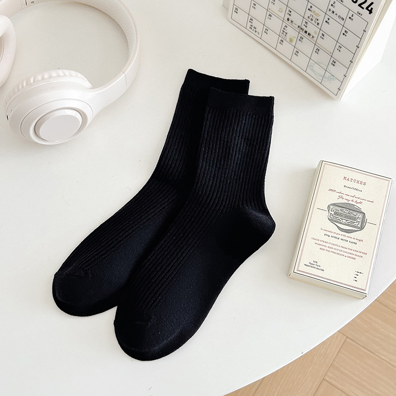 양말 여성 봄 여름 일본식 더블 바늘 종아리 양말 빗질면 흑백 단색 종아리 양말 ins 트렌디 스타킹 도매