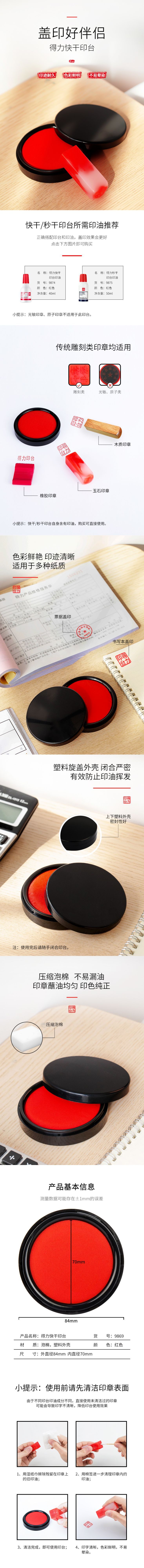 델리 9869 속건성 잉크 패드 대형 속건성 금융 스탬프 상자 잉크 패드 유성 비 페이딩 오피스 잉크 패드스토어 가기