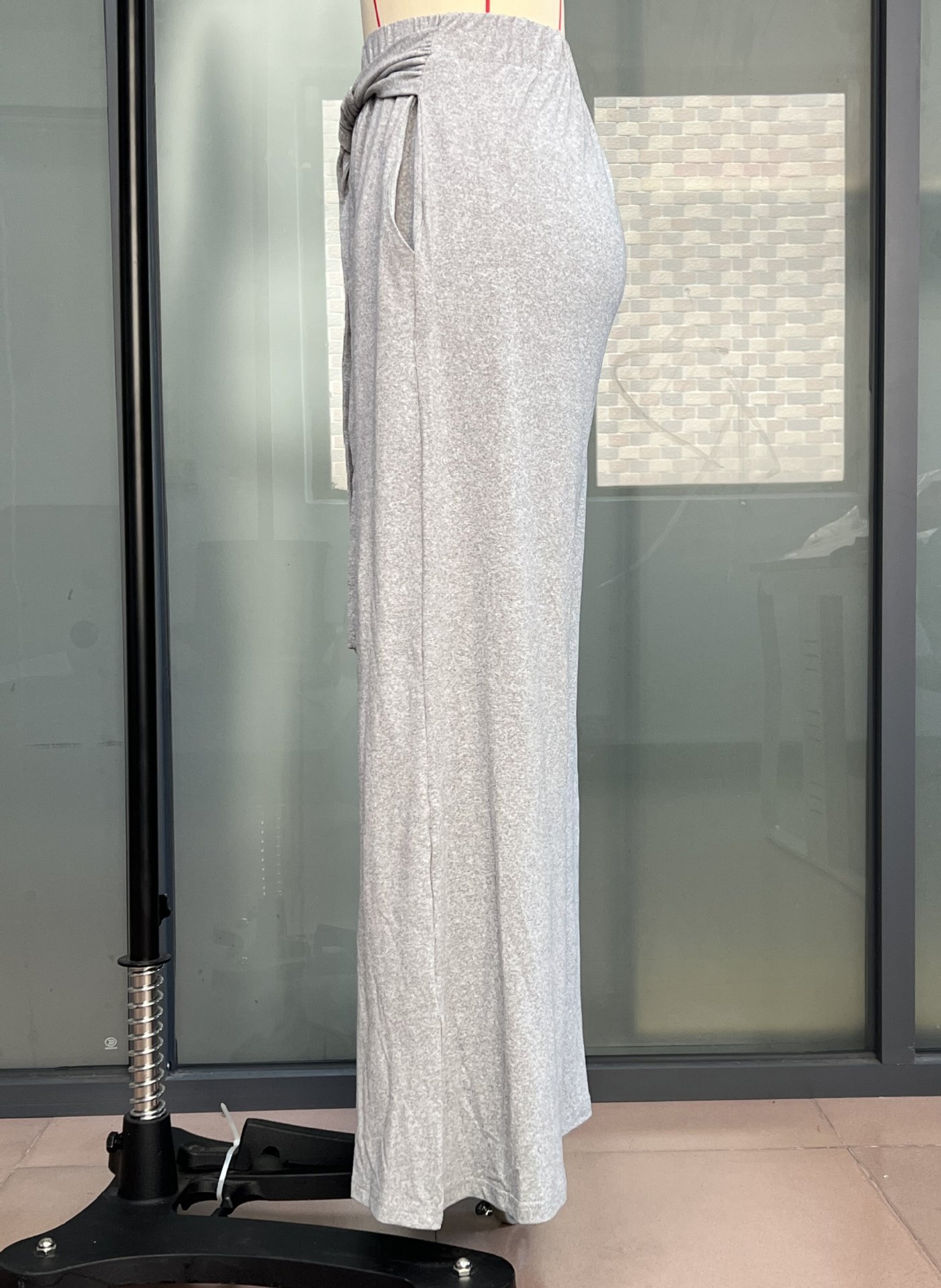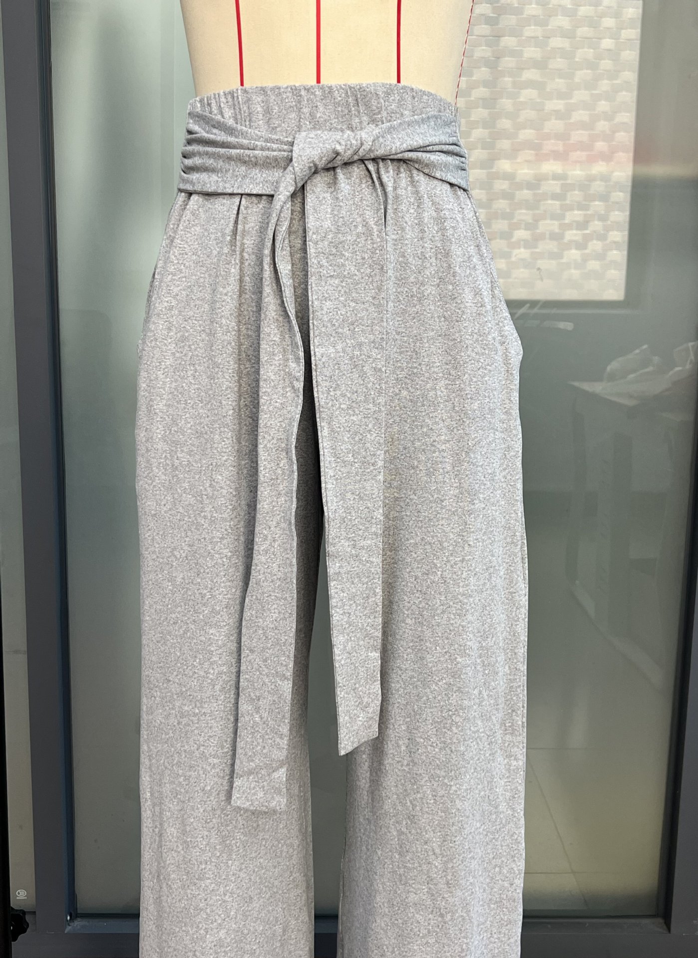 봄과 여름 2025 패션 여성 솔리드 컬러 레이스 업 와이드 레그 바지 캐주얼 올 매치 부드럽고 편안한 요가 바지스토어 가기