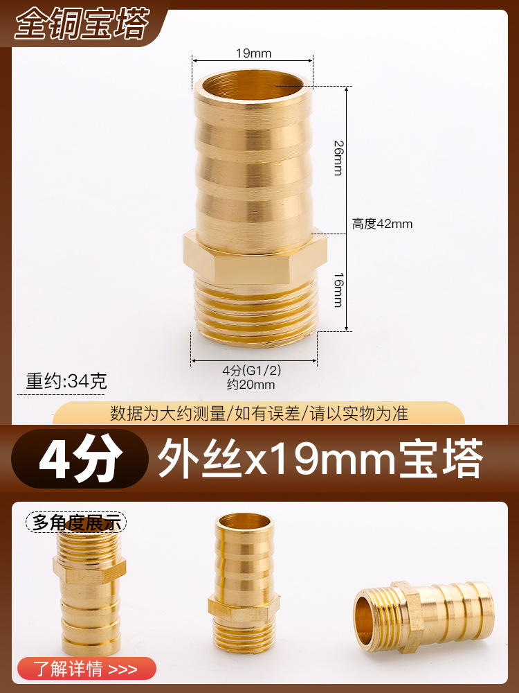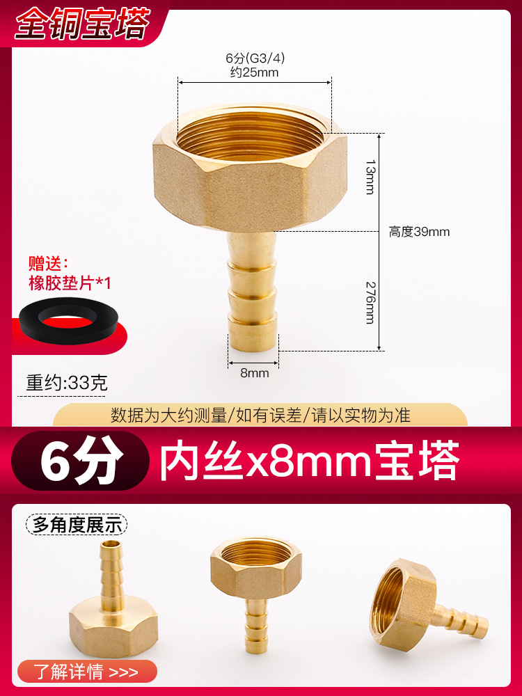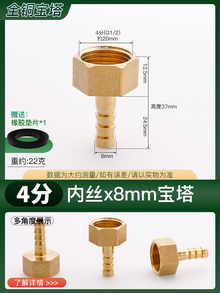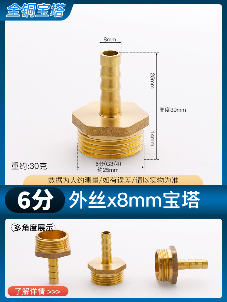 M&M 및 전체 구리 파고다 커넥터 가스 호스 천연 가스 가스 호스 내부 및 외부 와이어 4포인트 6포인트 그린 트랜스포머 인터페이스스토어 가기
