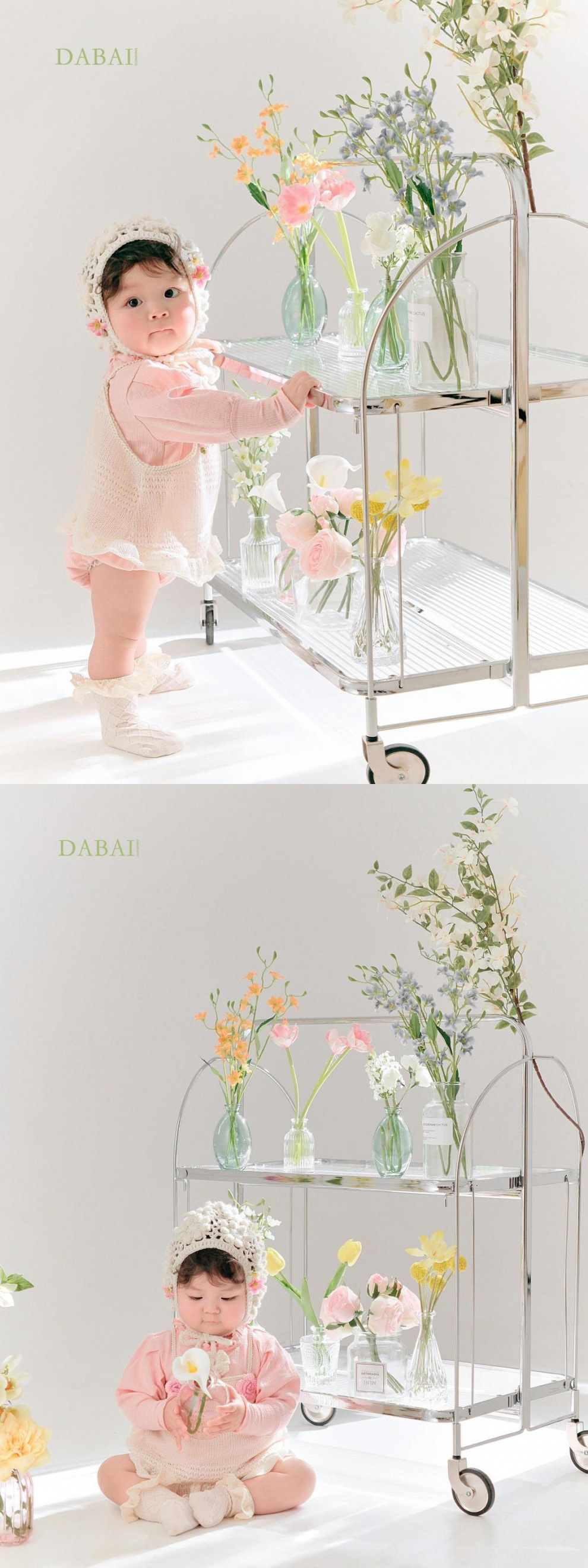 • 니트 서스펜더 스커트 + 핑크 이너웨어 + 오프화이트 레이스 양말
