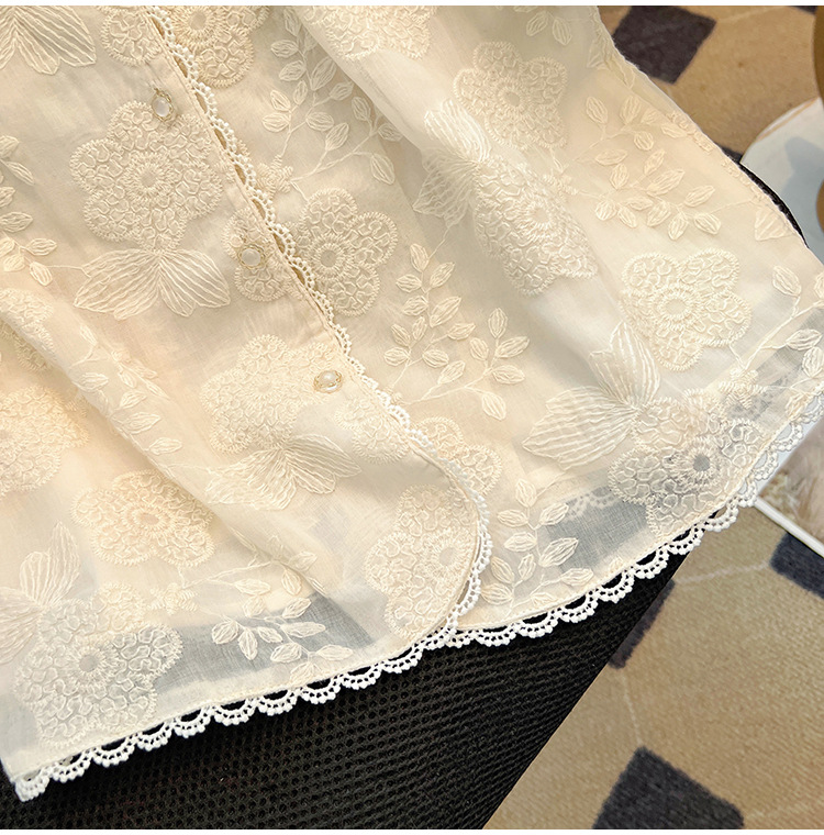 프랑스 스타일 우아한 레이스 V 넥 반팔 셔츠 여성 2025 년 여름 짧은 부드러운 나이 감소 한국 자수 작은 셔츠 탑스토어 가기