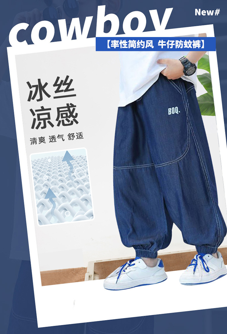 소년 바지 여름 얇은 2025 새로운 소년 여름 청바지 어린이 여름 모기 방지 바지 스포츠 바지스토어 가기