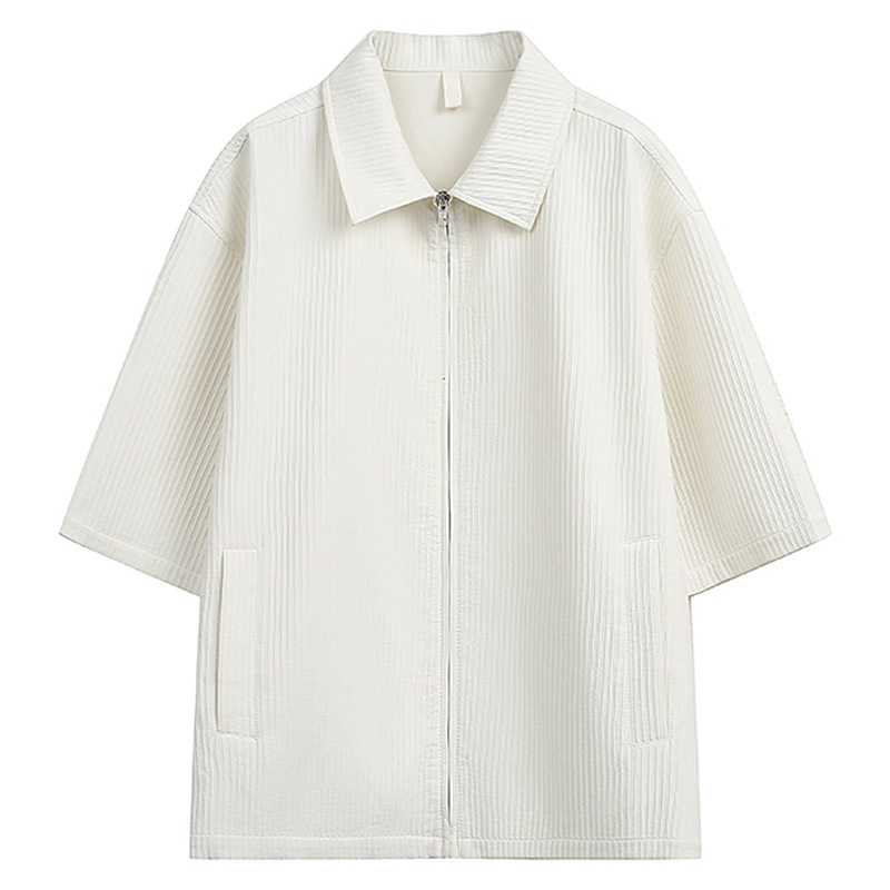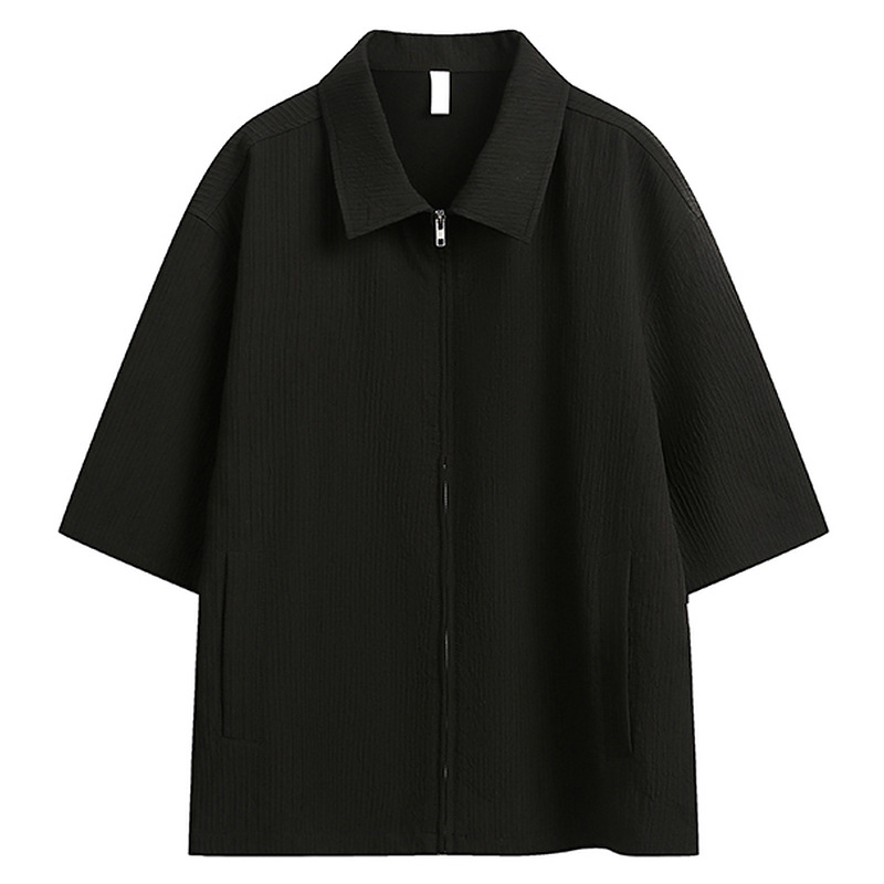 아메리칸 스타일 데라지 클린핏 지퍼 옷깃 카디건 짧은 반팔 셔츠 남자 잘 생긴 젊은 마스터의 반소매 셔츠스토어 가기