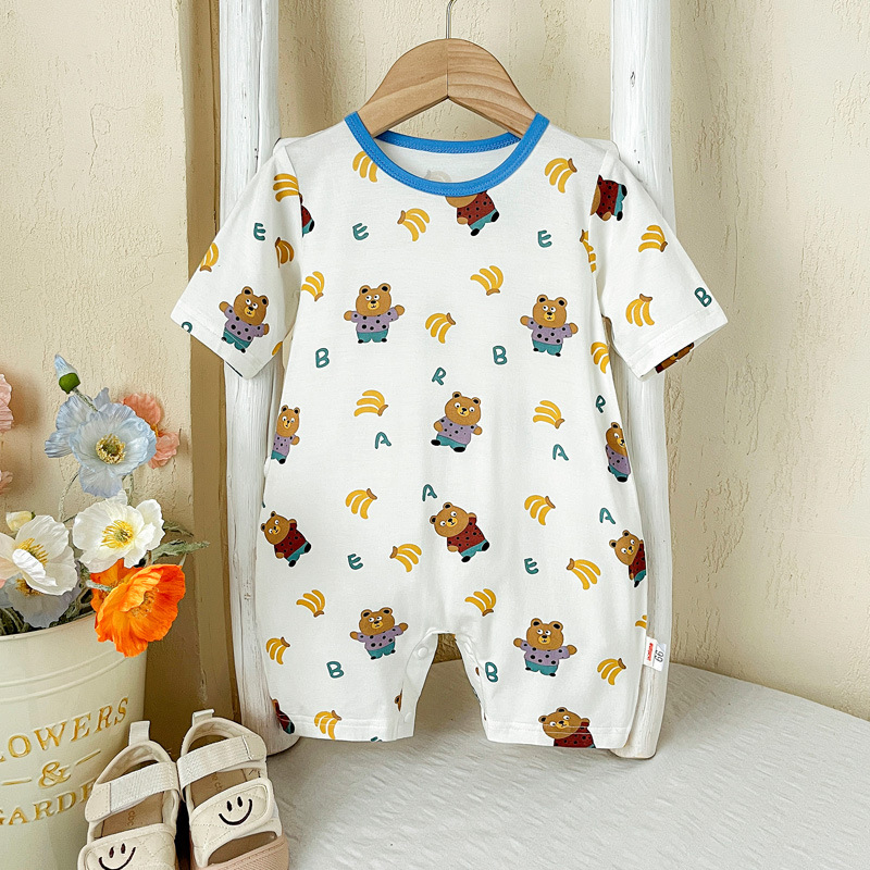 아기 옷 여름 반팔 얇은 유형 A 점프 슈트 만화 귀여운 남성과 여성 아기 여름 에어컨 옷 잠옷스토어 가기