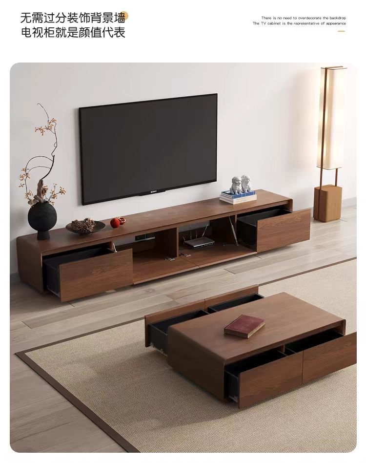 단단한 나무 TV 캐비닛 커피 테이블 조합 거실 TV 캐비닛 바닥 서 시청각 캐비닛 골동품 호두 가구스토어 가기