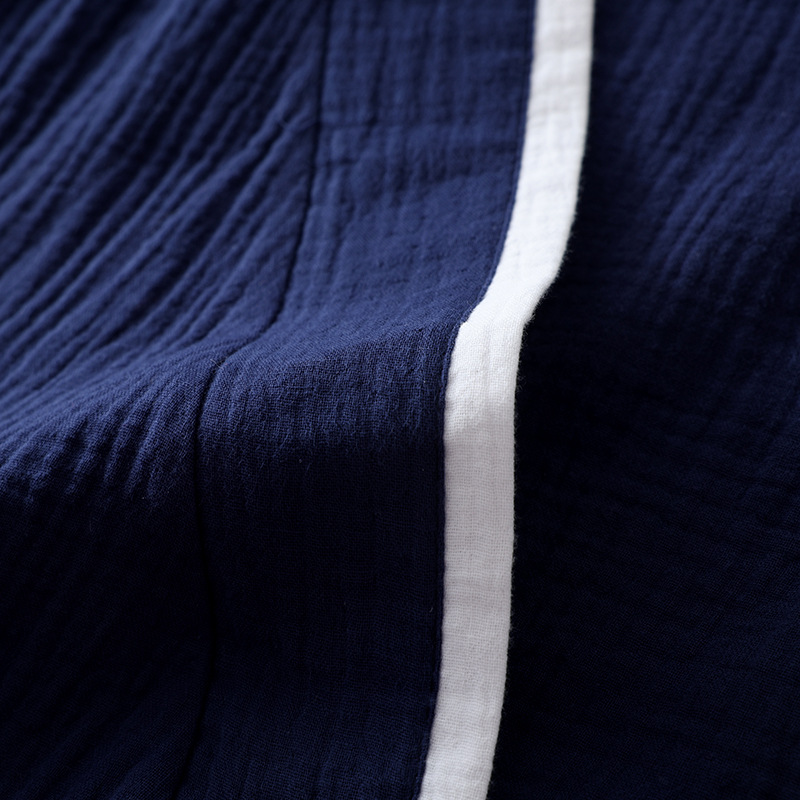 일본 순면 크레이프 컬러 블록 스파 슈트 잠옷 남성용 긴팔 바지 레이스 업 얇은 기모노 홈웨어 세트