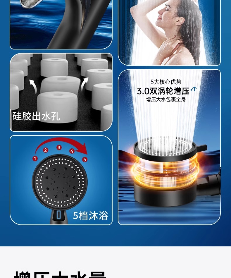 • [건그레이] 5단 슈퍼차저 대유량 샤워헤드