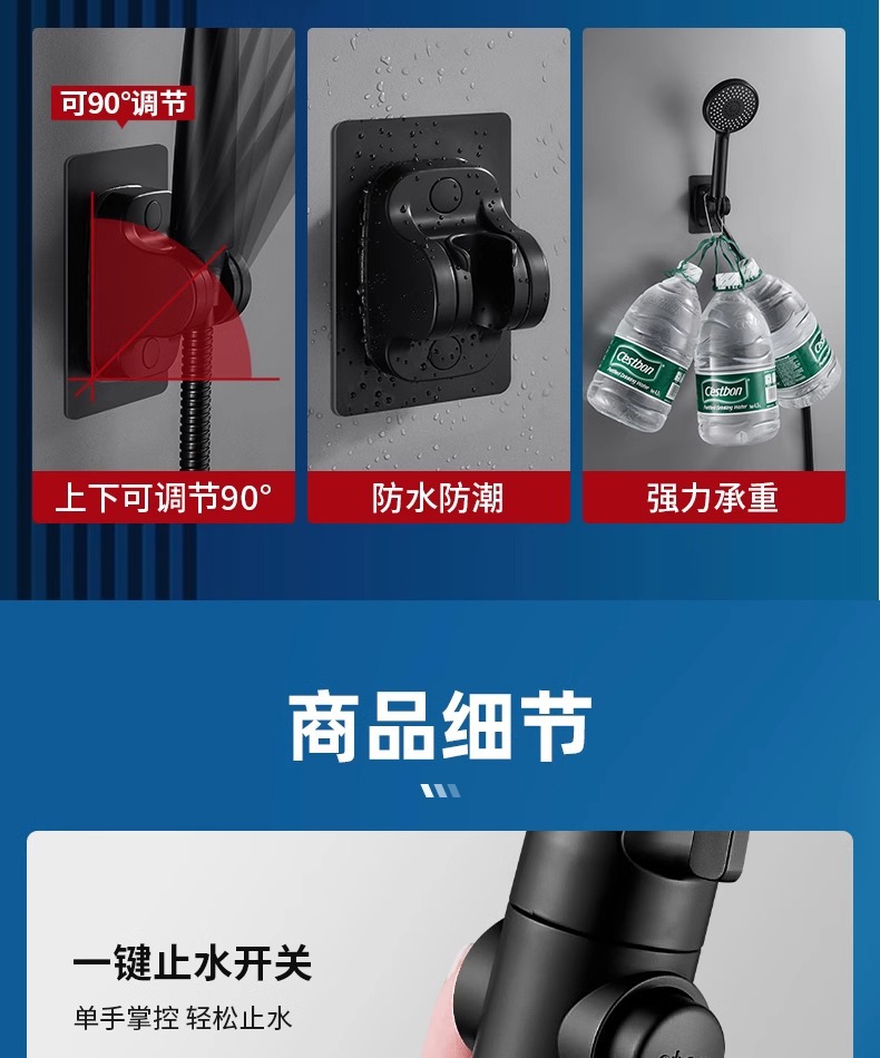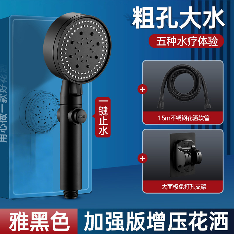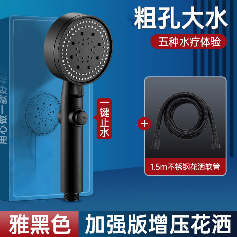 • [엘리강트 블랙] 부스터 샤워기 + 1.5m 호스 + 샤워 브라켓