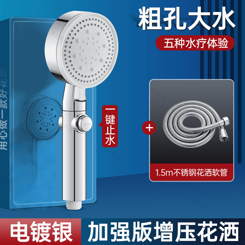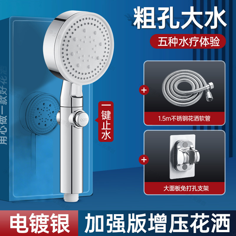 • [전기도금 실버] 부스터 샤워기 + 1.5m 호스 + 샤워 브라켓