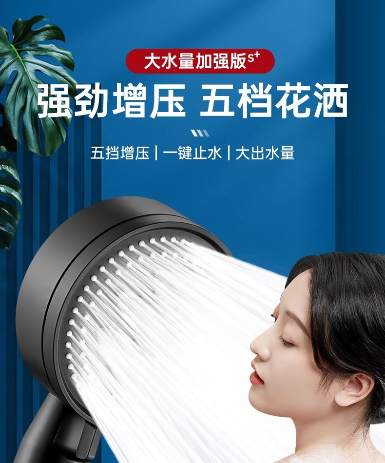 가압 샤워 헤드 5 단 조정 가정용 목욕 가압 레인 샤워 헤드 샤워 헤드
