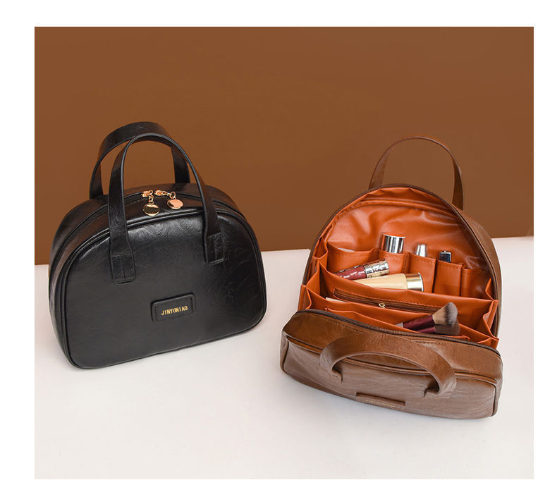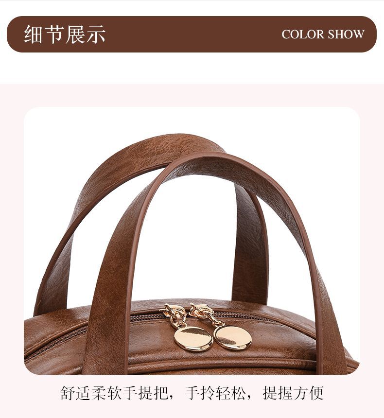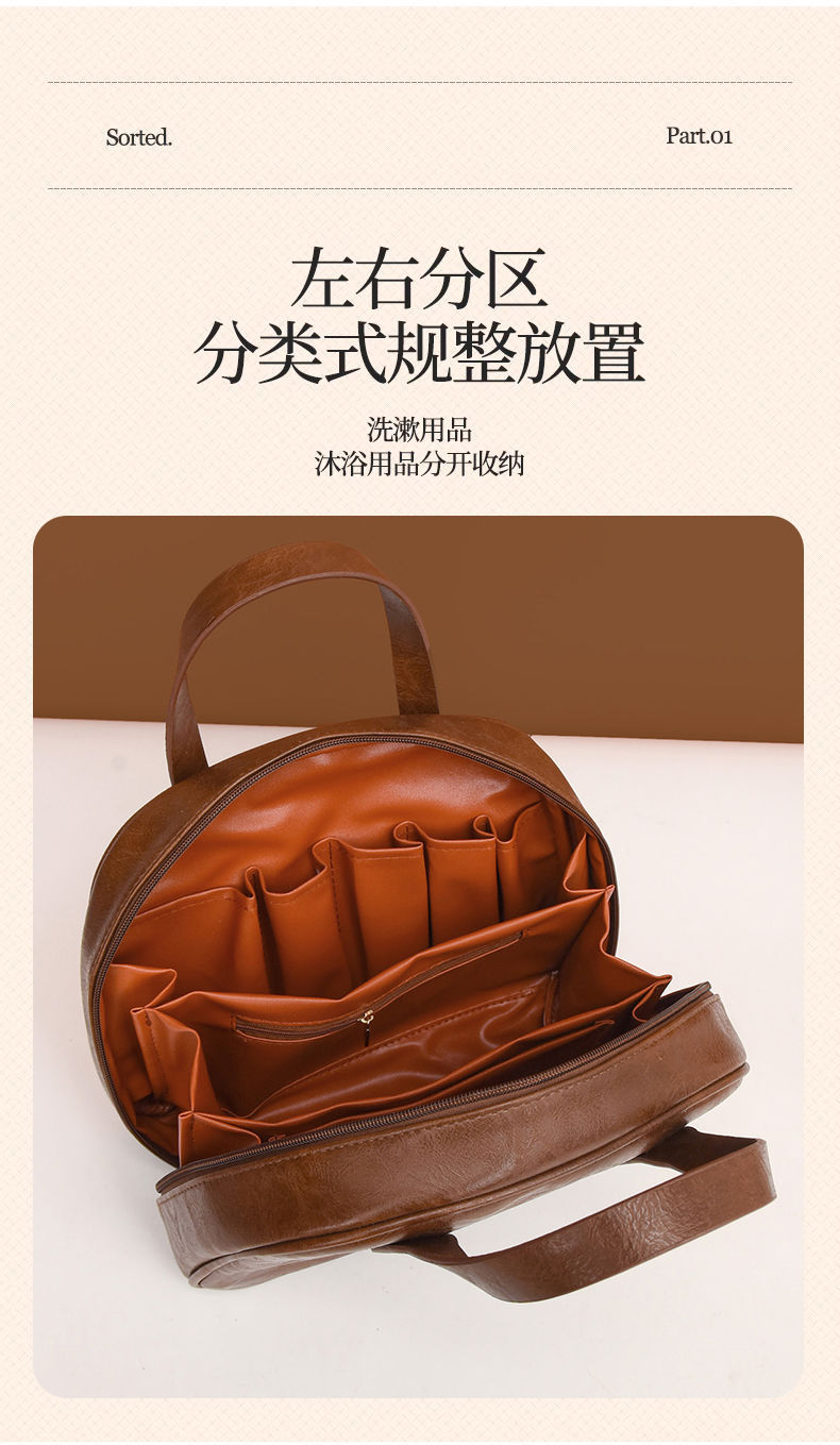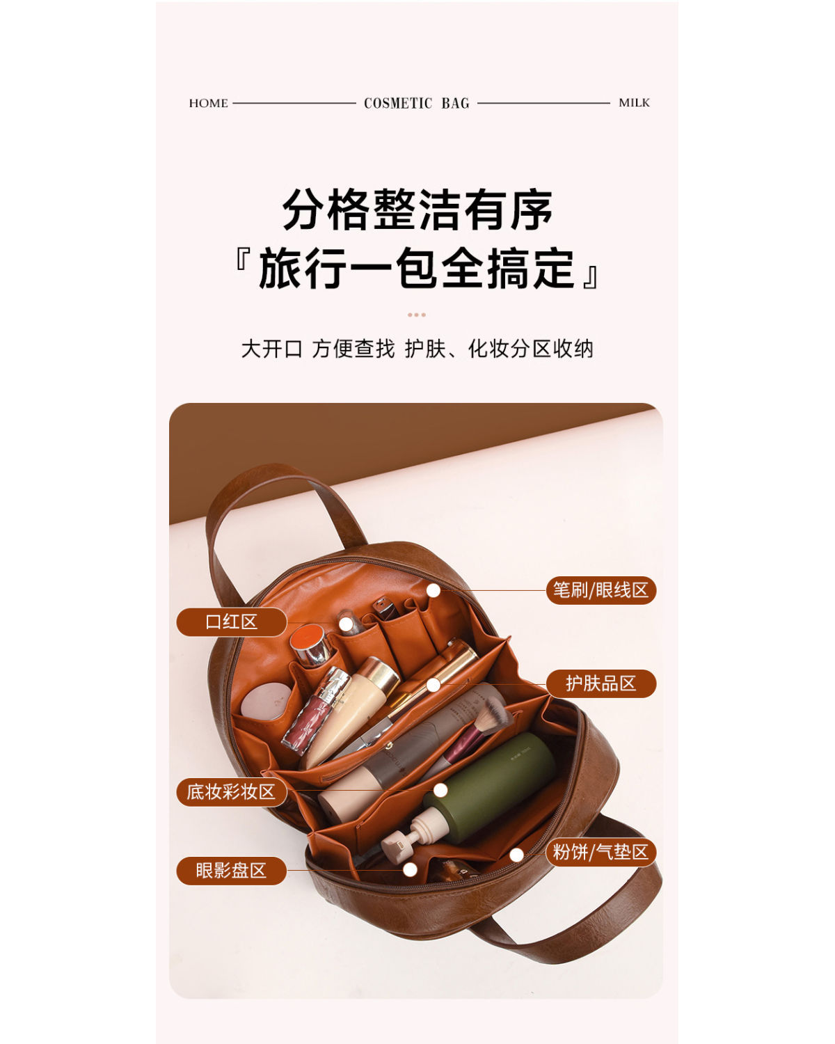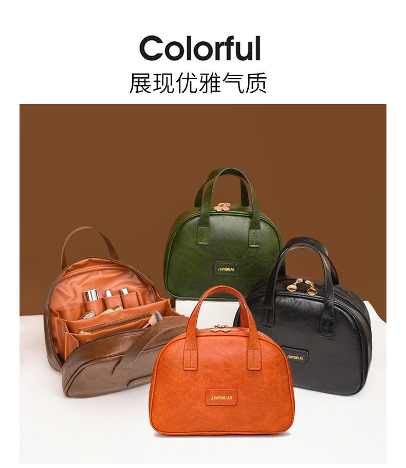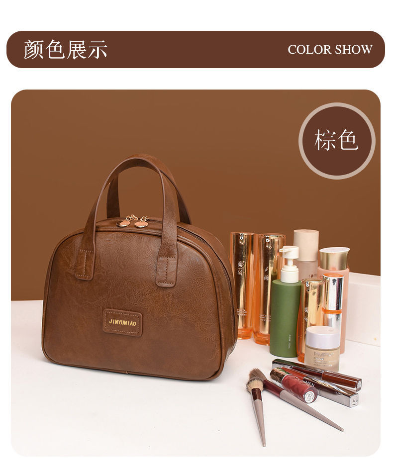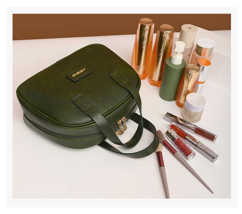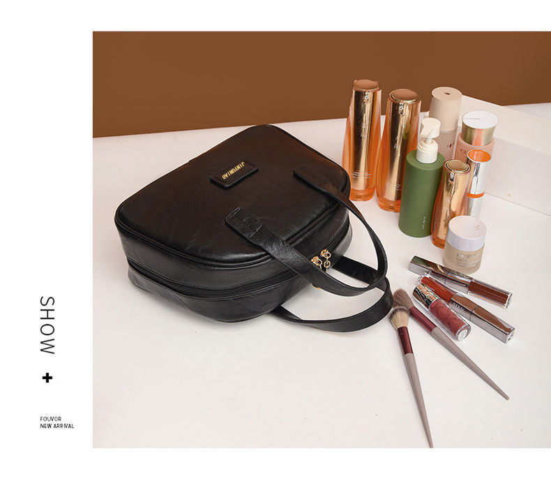 2025 새로운 스타일의 오일 왁스 가죽 빈티지 화장품 가방 여성의 대용량 유행 하이 엔드 센스 휴대용 여행 스킨 케어 보관 가방스토어 가기