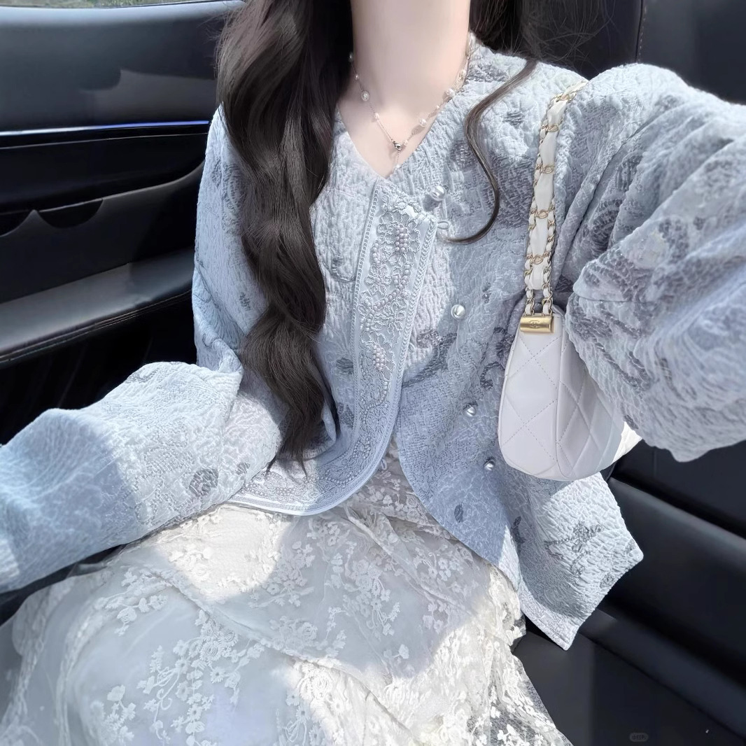 2025 봄과 가을 새로운 슈퍼 핫 엔드 새로운 중국 스타일 국가 스타일 짧은 재킷 스커트 우아한 투피스 세트