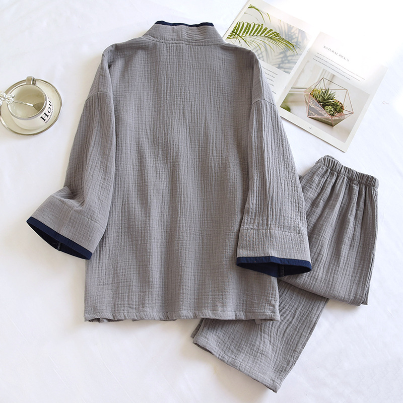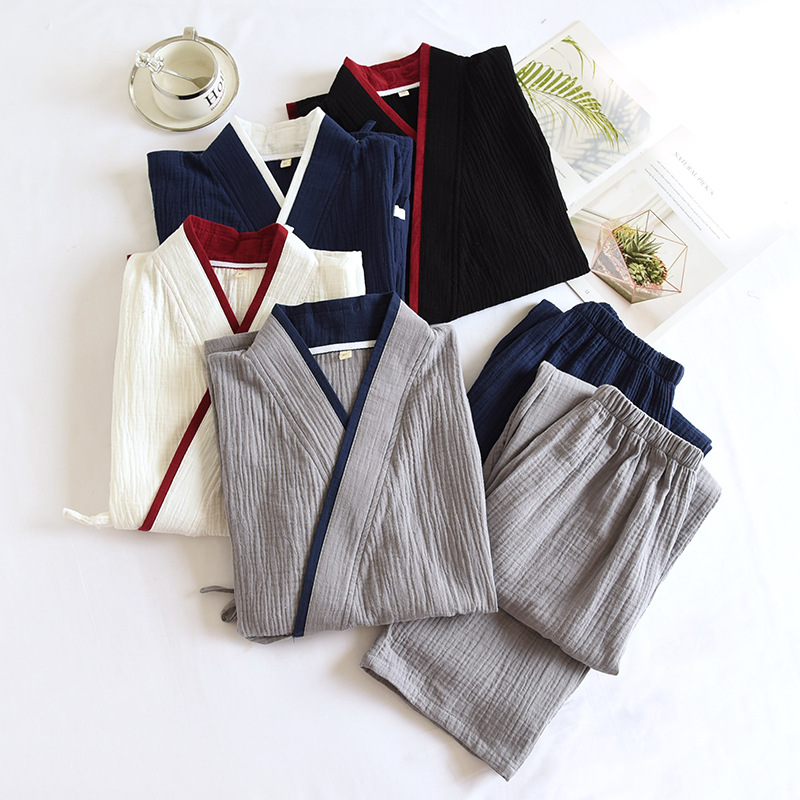 일본 기모노 잠옷 남성용 순면 워시 루즈 100kg 봄 여름 얇은 바지 스팀 홈웨어 세트스토어 가기