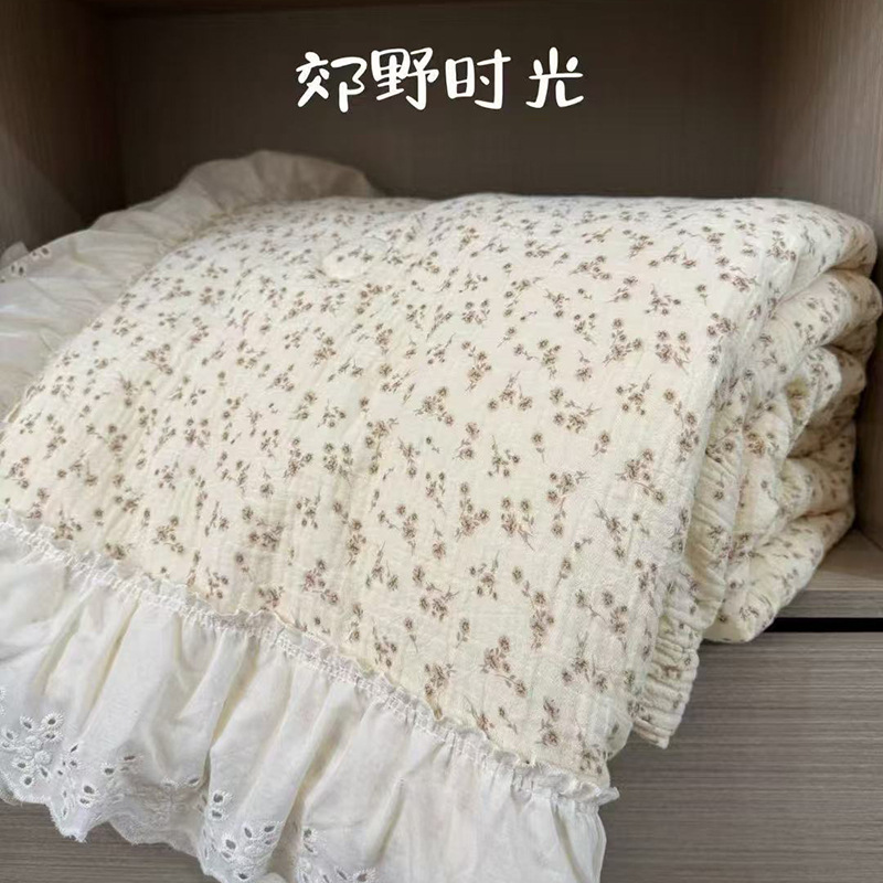 순면 주름 원사 더블 여름 이불 프랑스 대형 레이스 작은 꽃 낭만적 인 목가적 스타일 거즈 에어컨 이불 여름 이불스토어 가기