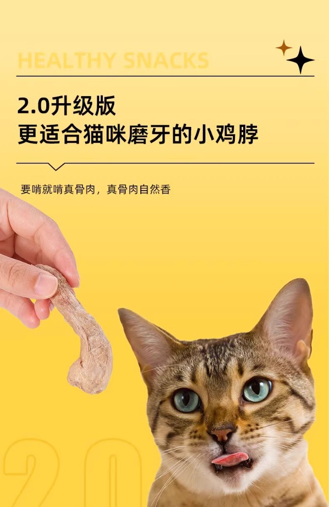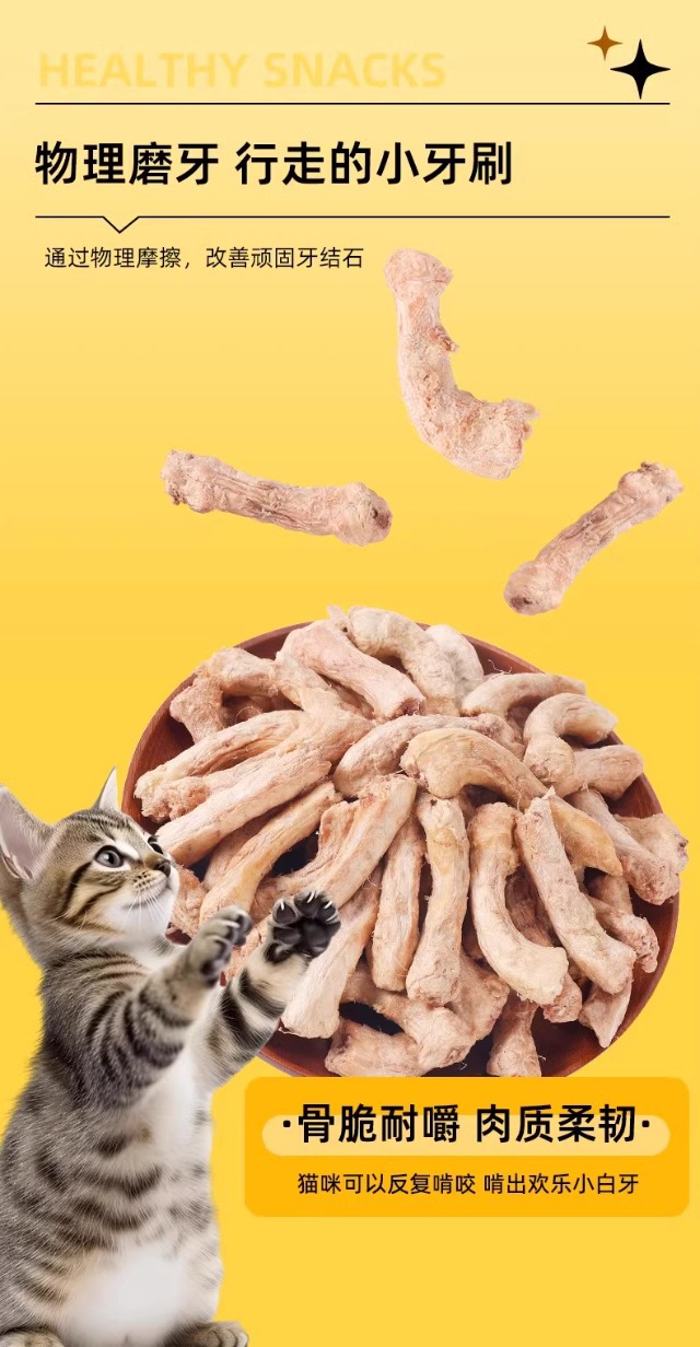 동결건조 닭목뼈 애완동물 간식, 고양이 어금니 스틱, 육포, 고양이 간식, 강아지 애완동물 치아 청소, 구취 개선스토어 가기