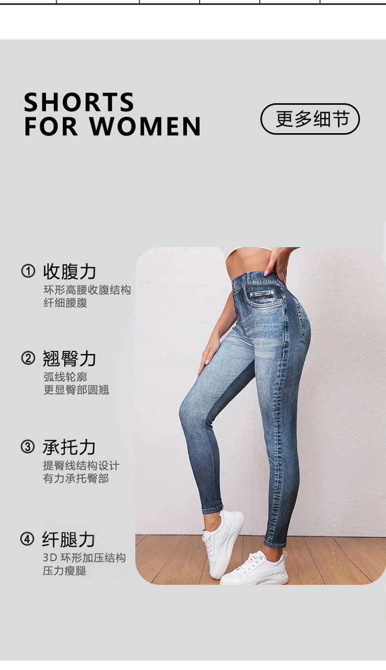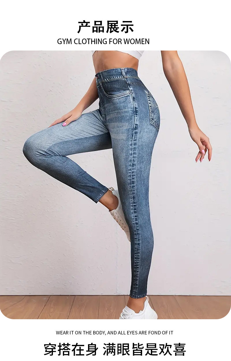 국경 복고풍 고탄력 모조 데님 스타킹 엉덩이 리프팅 요가 바지 모조 데님 요가 바지 여성을위한 요가 피트니스 의류스토어 가기