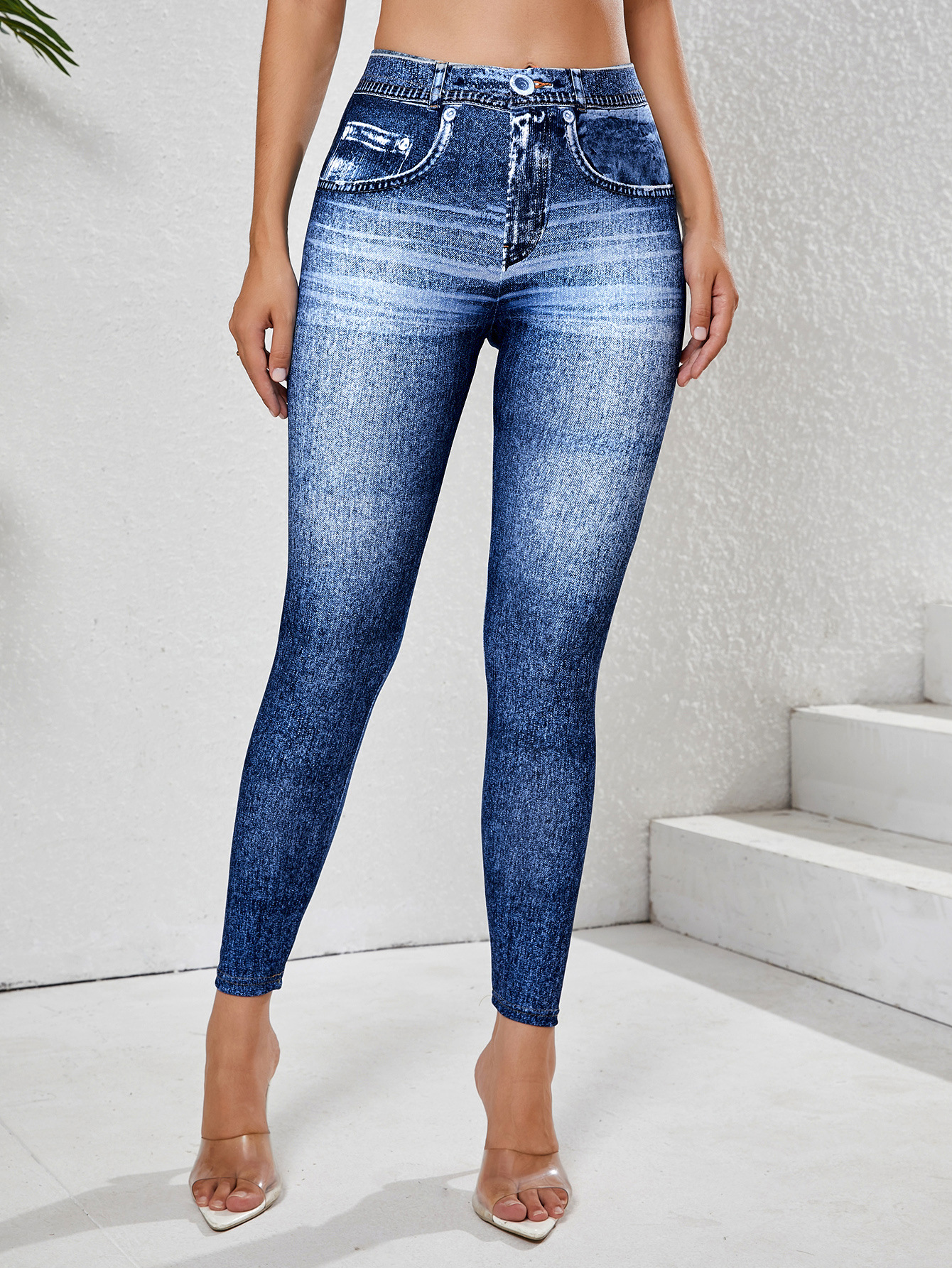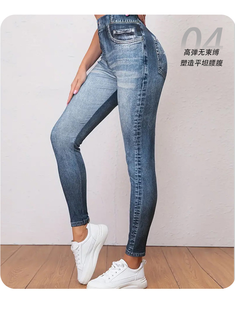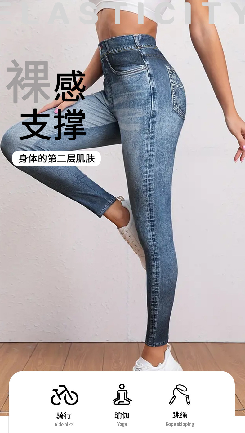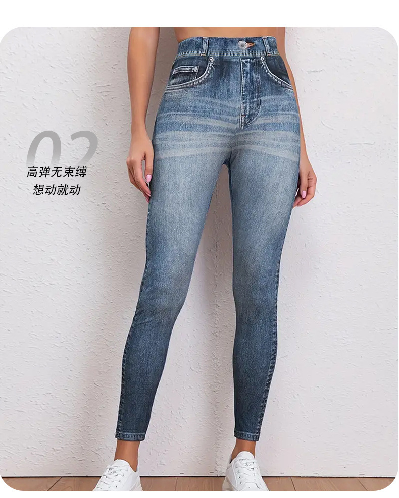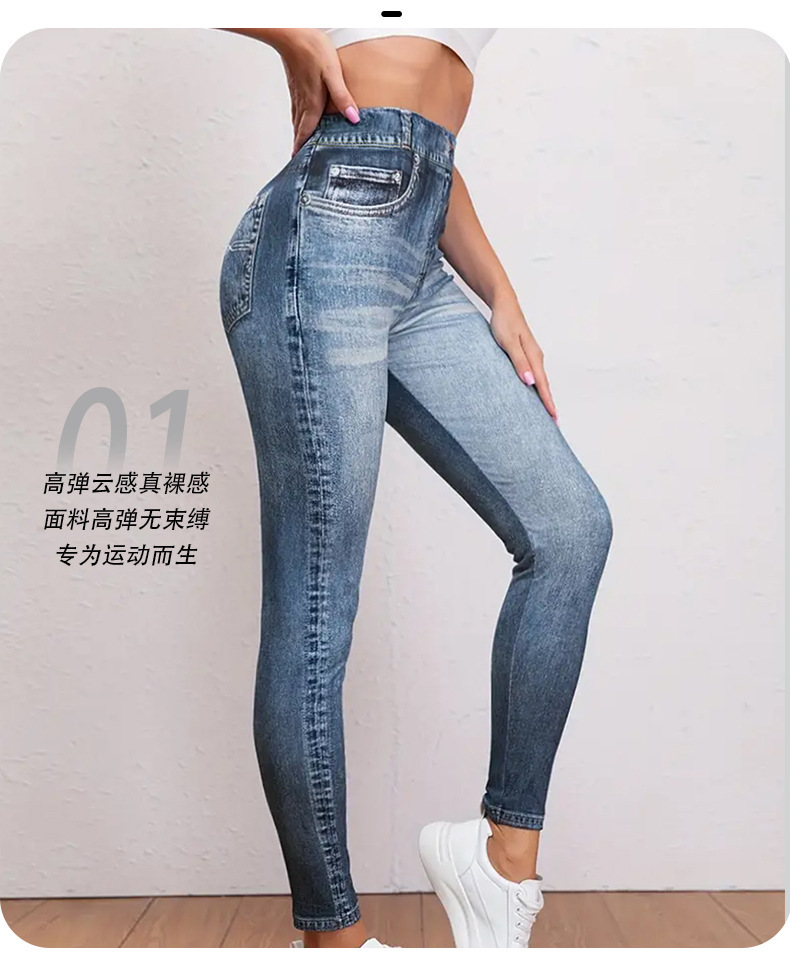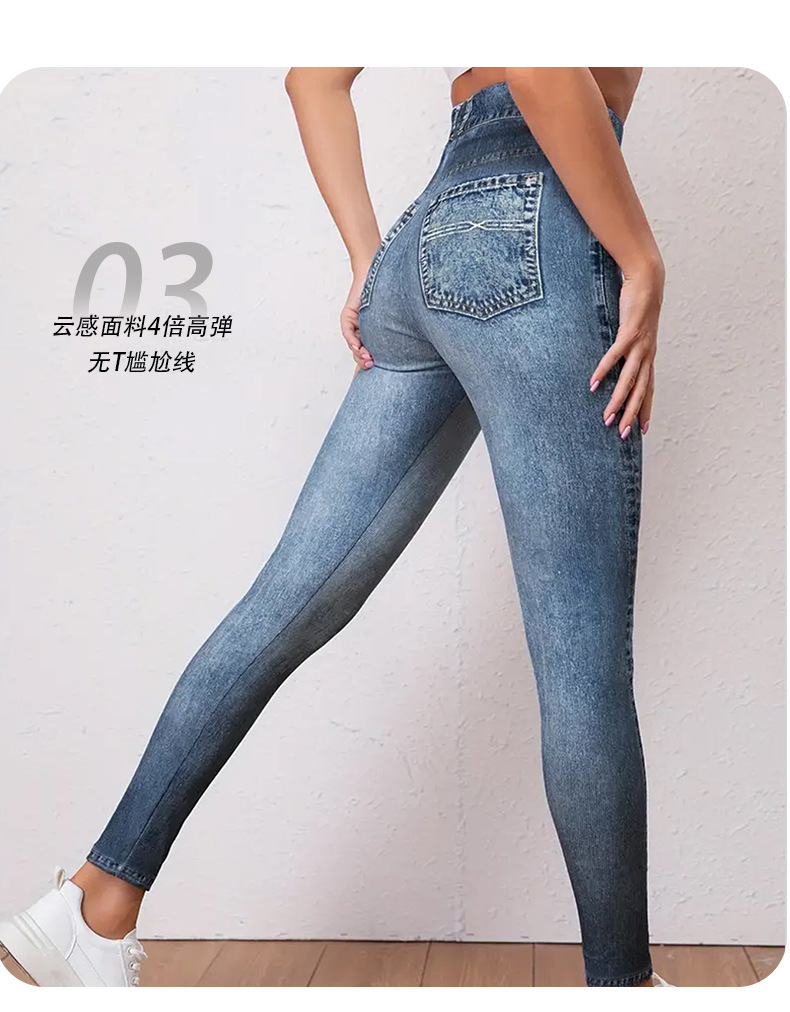 국경 복고풍 고탄력 모조 데님 스타킹 엉덩이 리프팅 요가 바지 모조 데님 요가 바지 여성을위한 요가 피트니스 의류