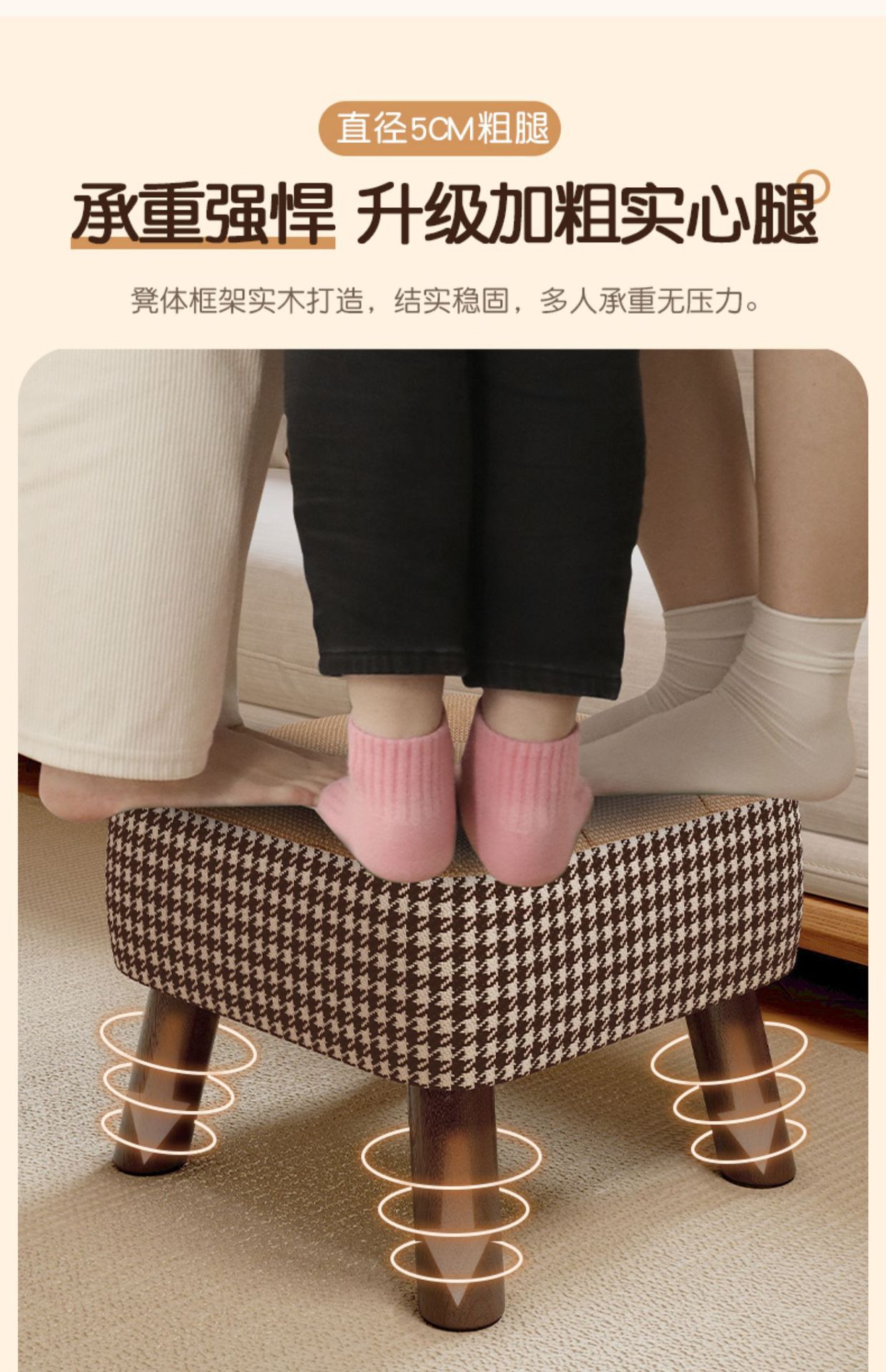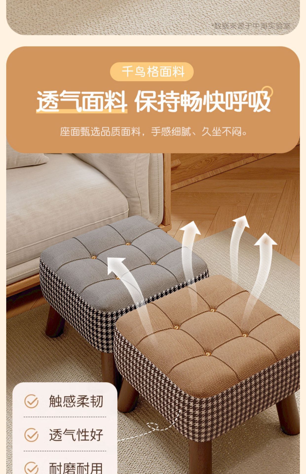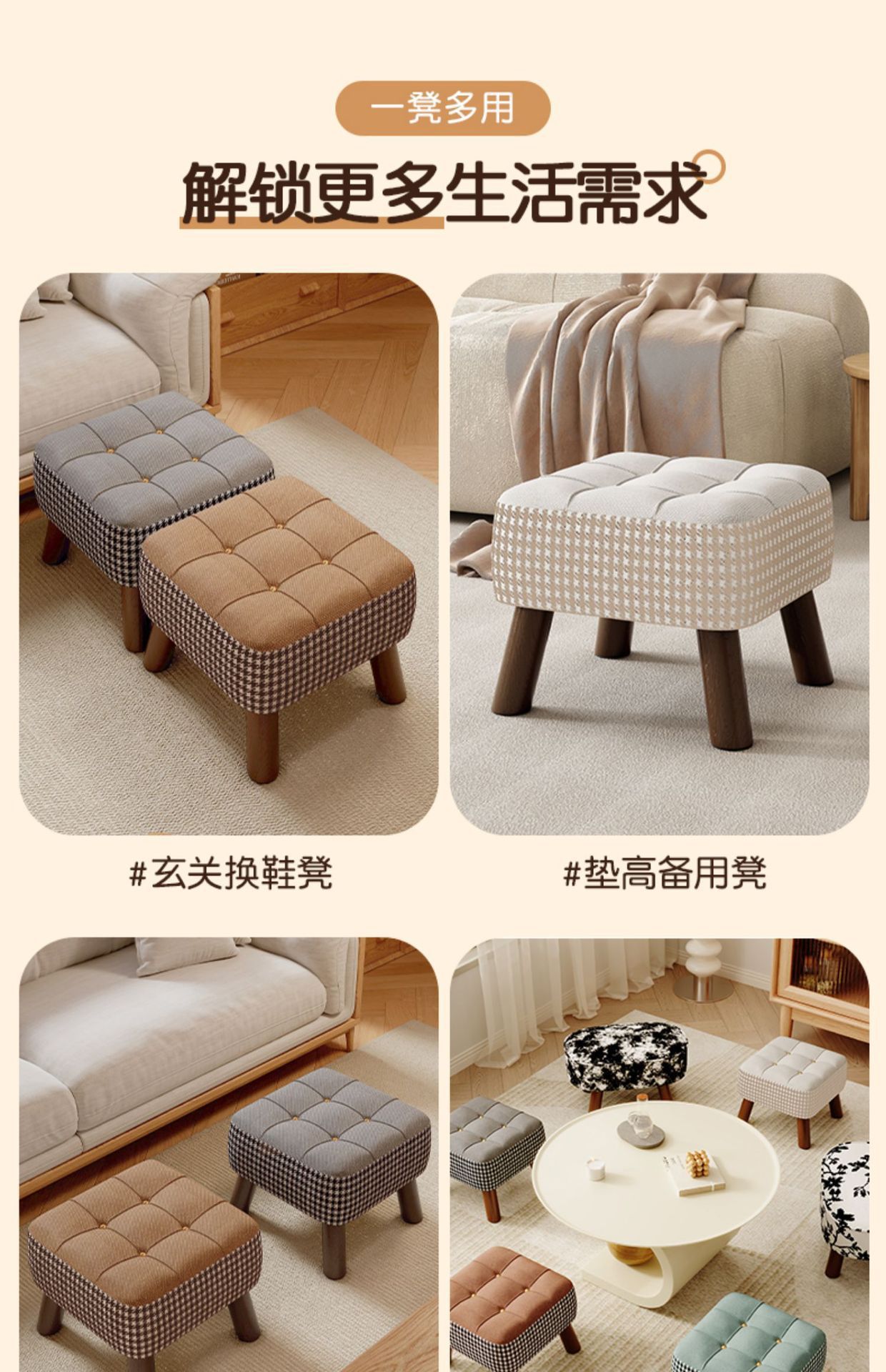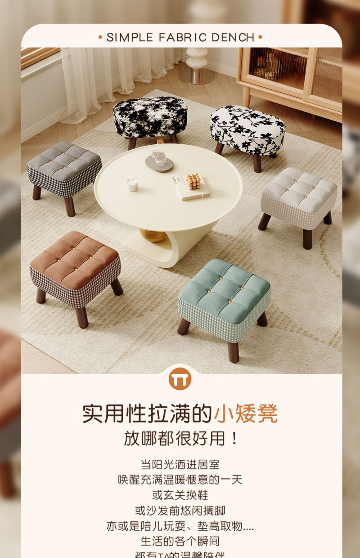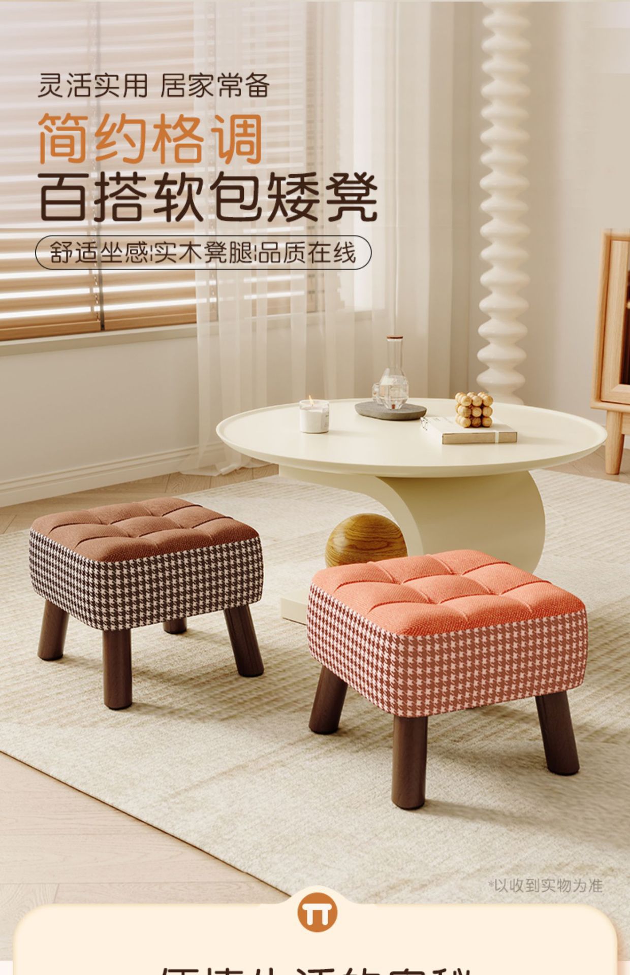 奶油风小凳子家用矮凳木客厅茶几凳门口换鞋凳高级感软包小板凳