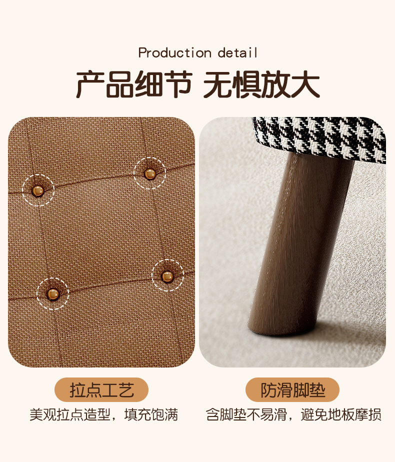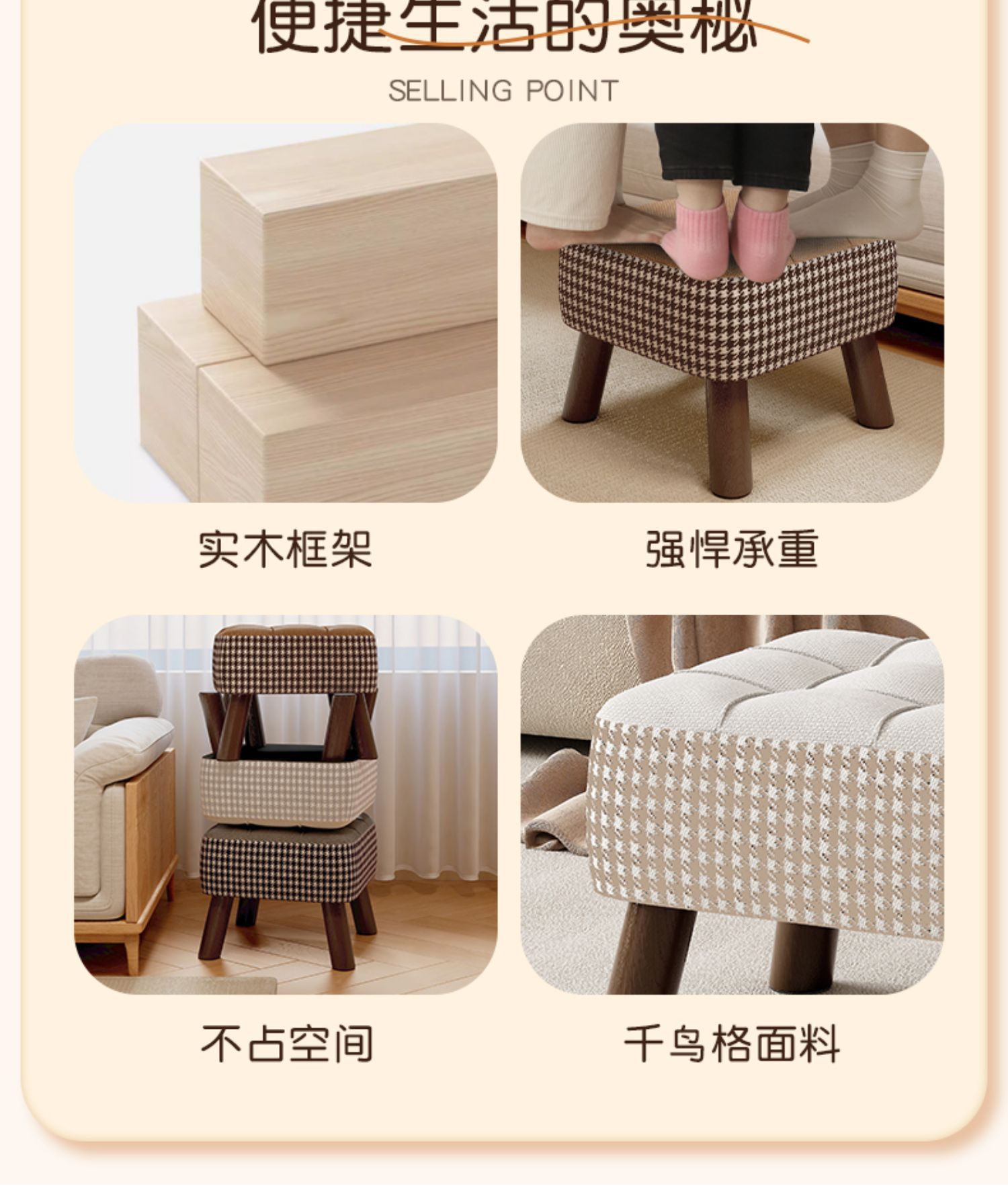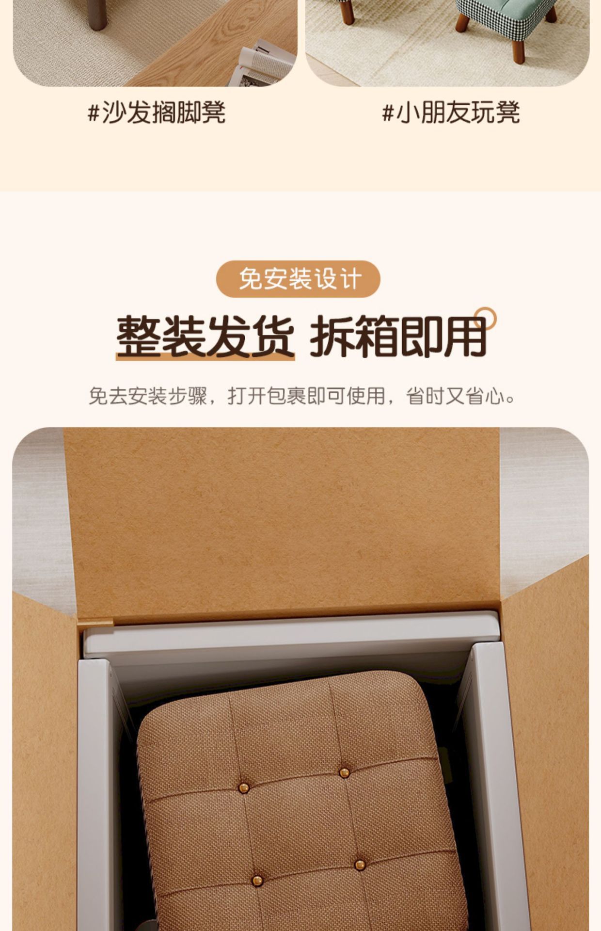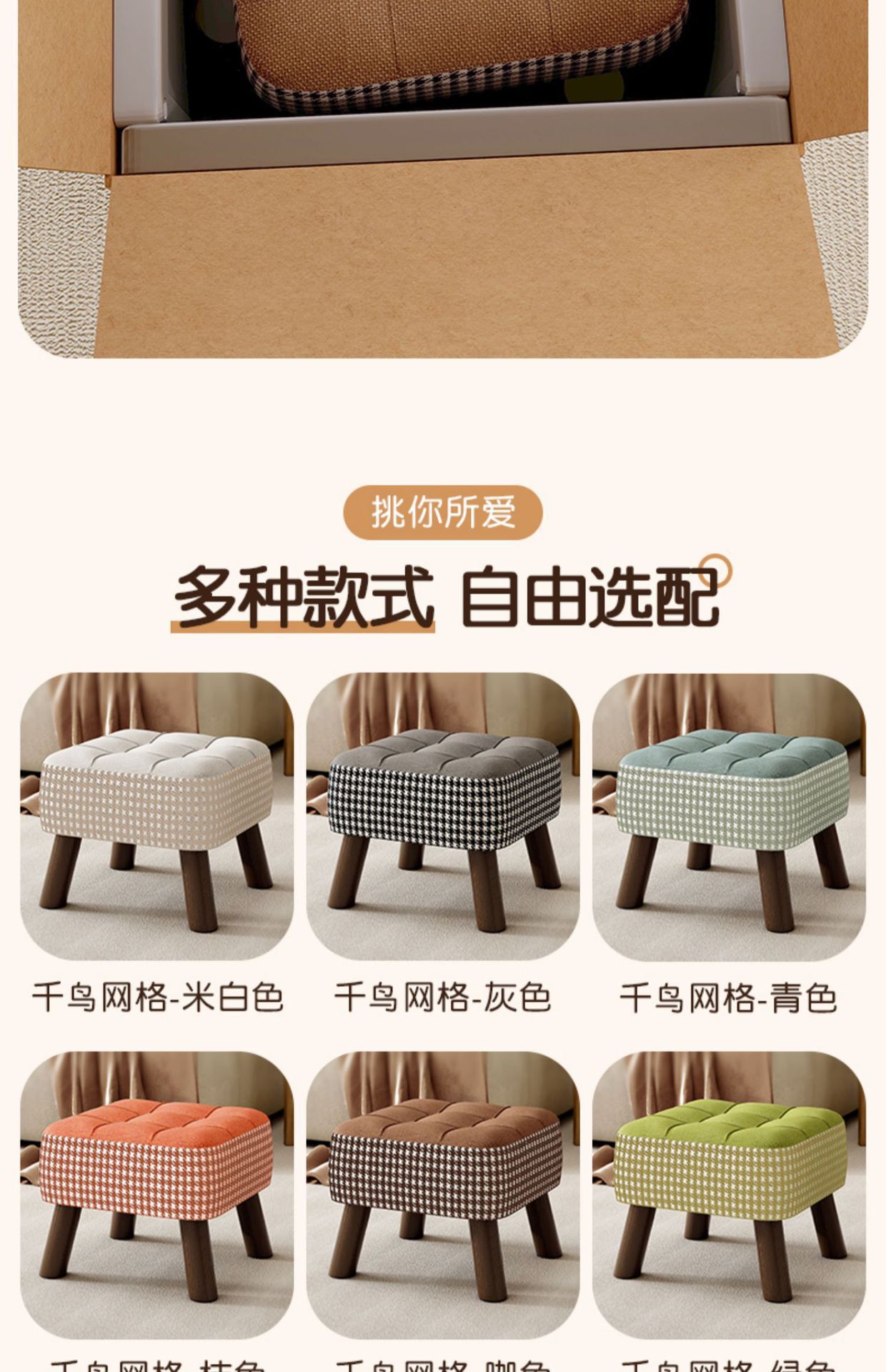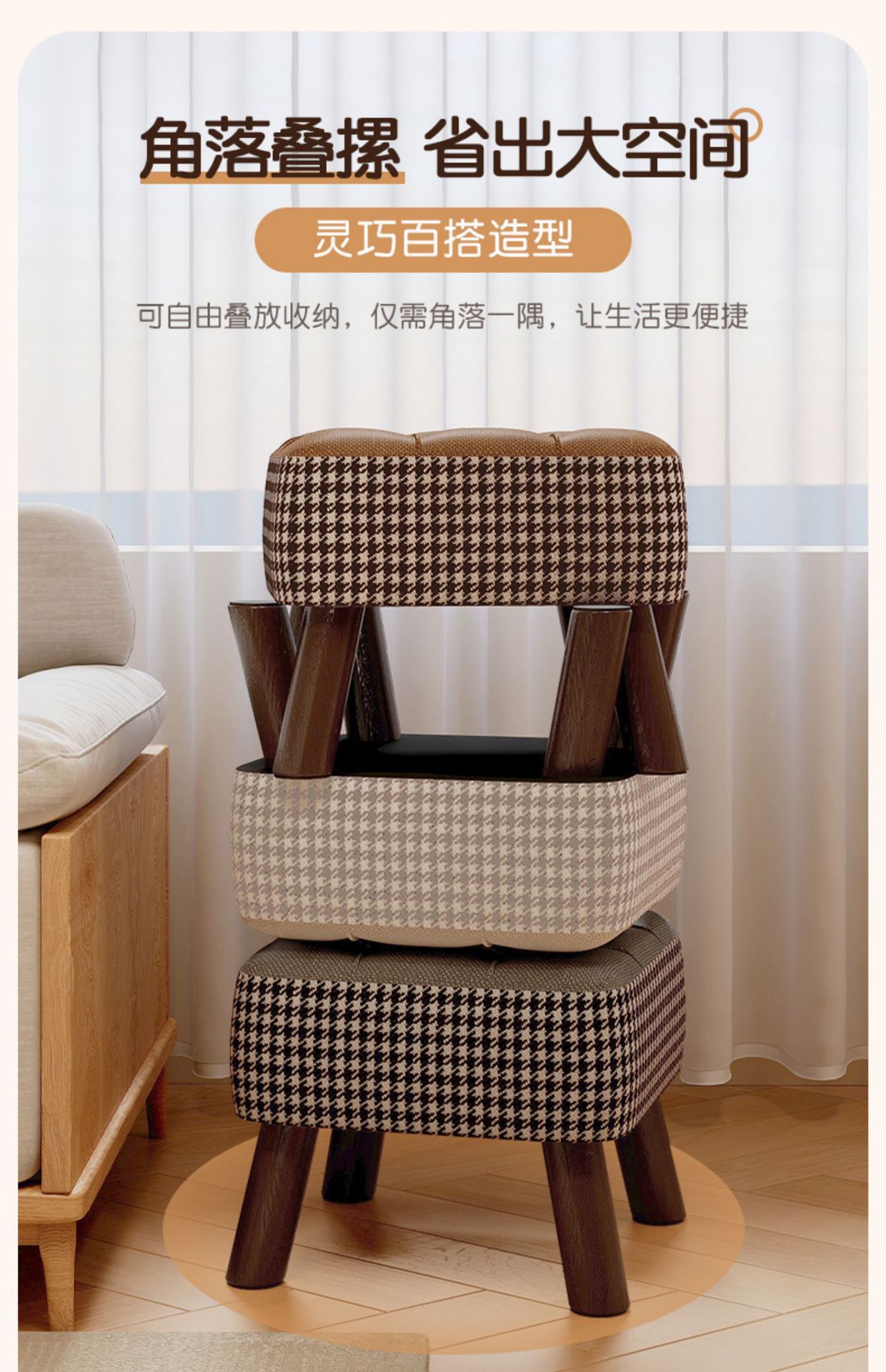 奶油风小凳子家用矮凳木客厅茶几凳门口换鞋凳高级感软包小板凳