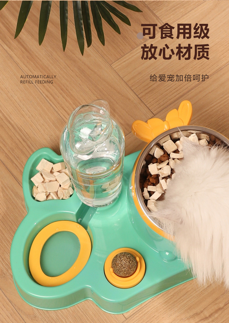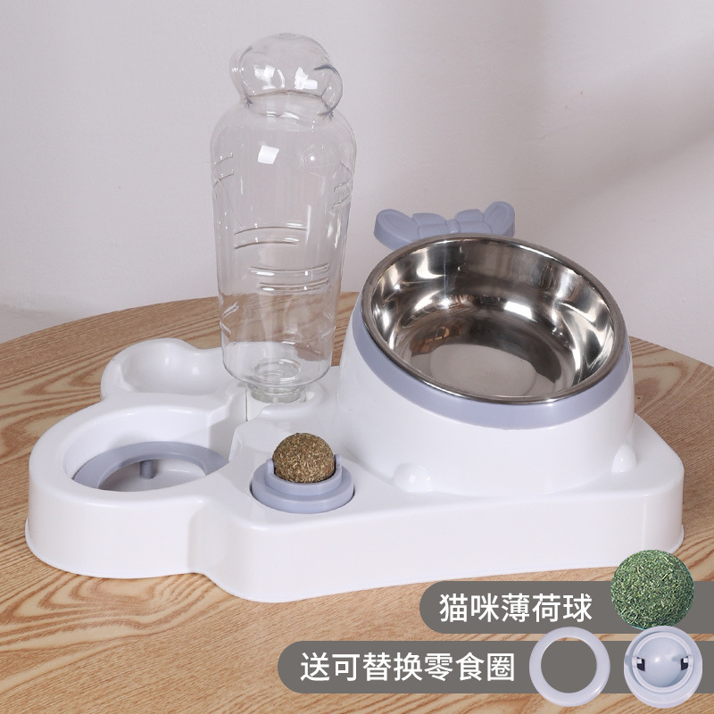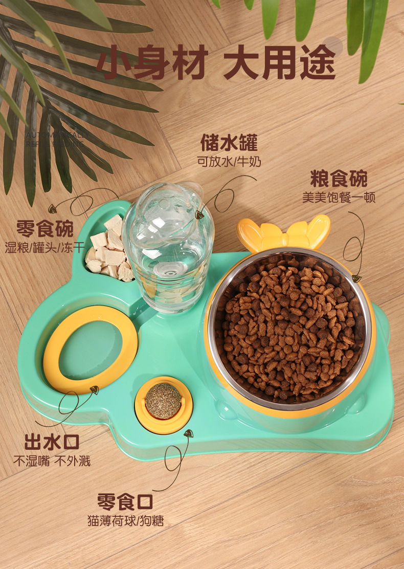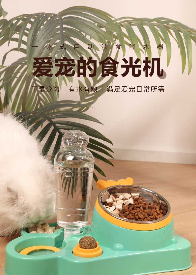 애완 동물 물 디스펜서 대용량 건조 및 습식 분리 스테인레스 스틸 그릇 세라믹 그릇 물 공급 통합 고양이 그릇 자동 피더스토어 가기