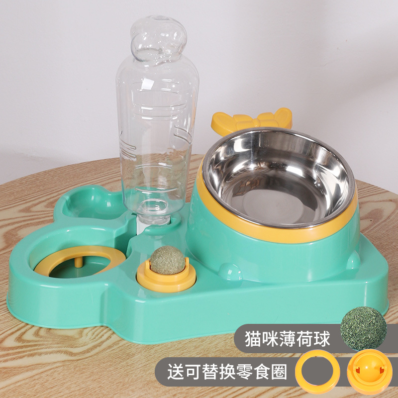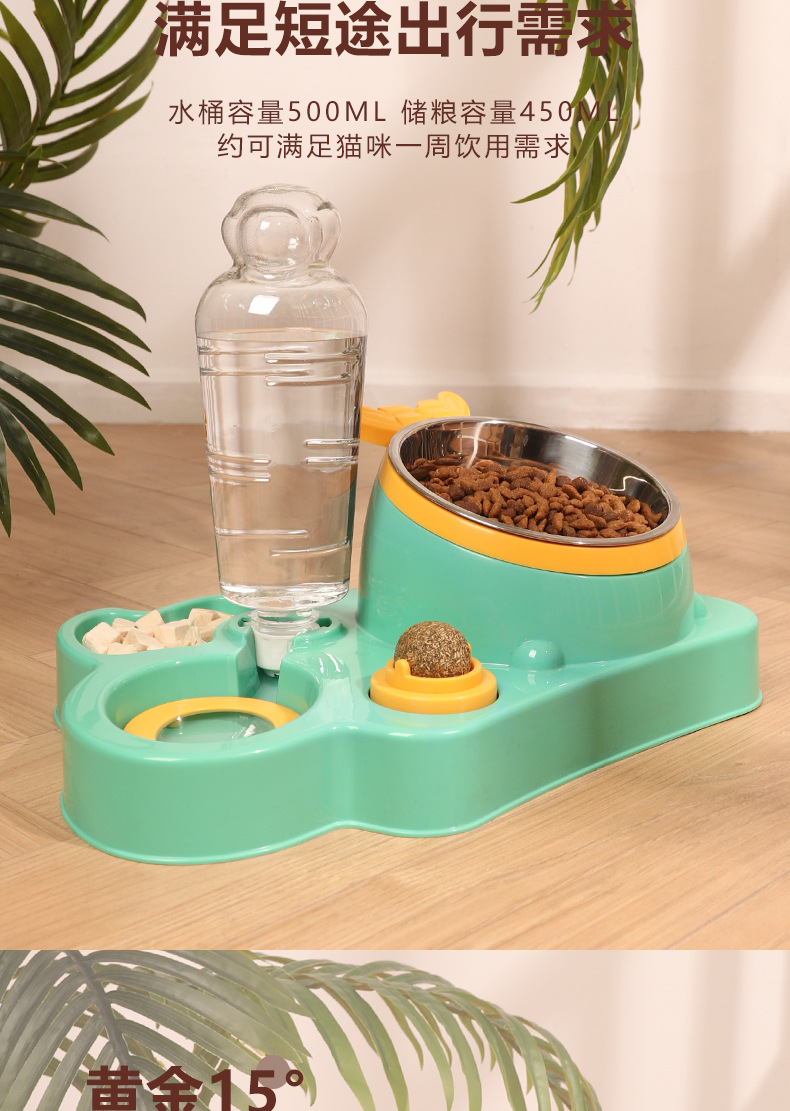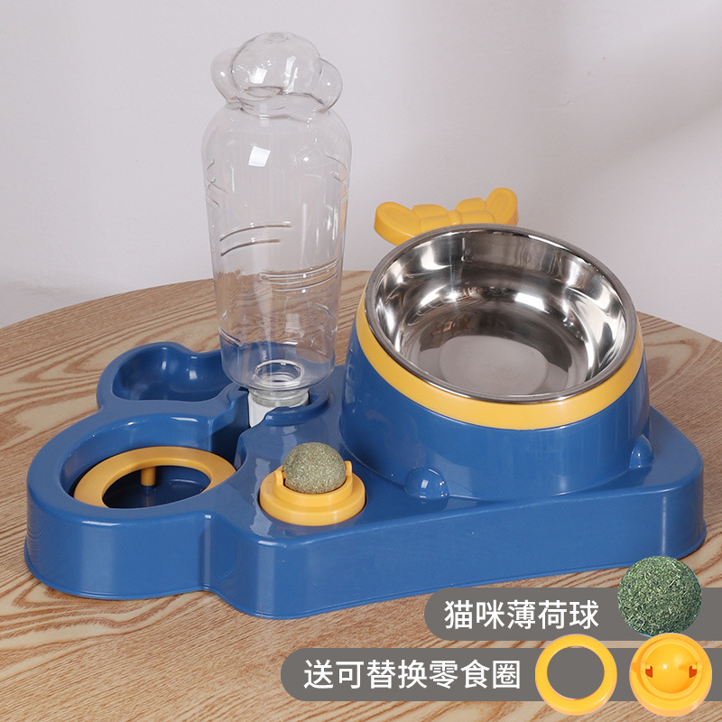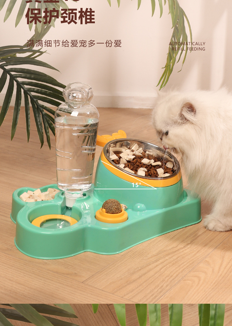 애완 동물 물 디스펜서 대용량 건조 및 습식 분리 스테인레스 스틸 그릇 세라믹 그릇 물 공급 통합 고양이 그릇 자동 피더스토어 가기