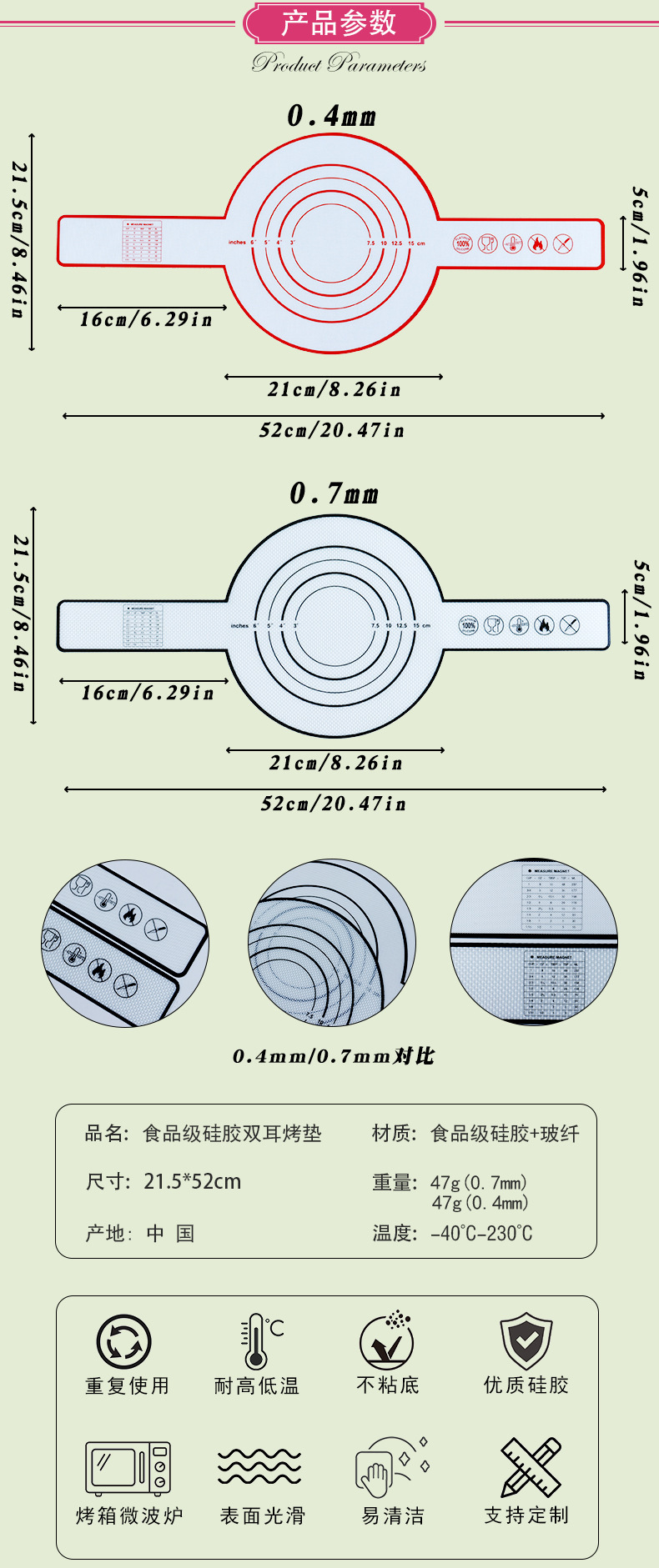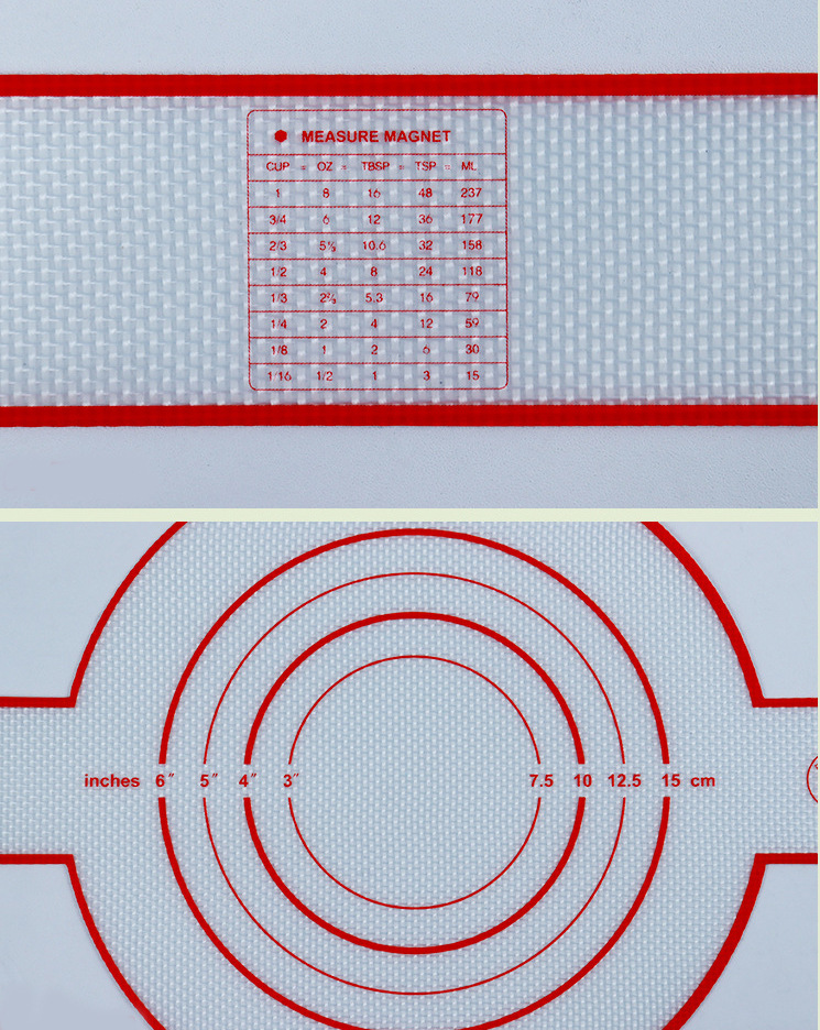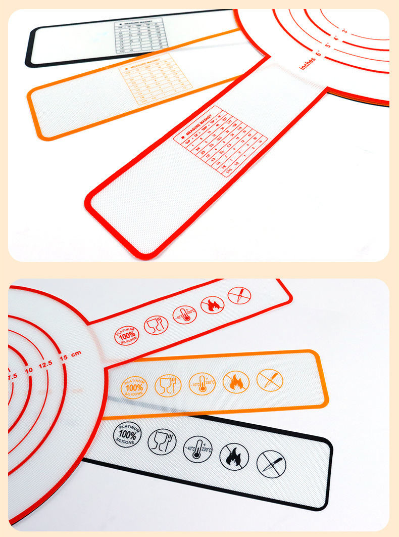 스케일이 있는 이중 귀 베이킹 매트 유리 섬유 네덜란드 오븐 매트 식품 등급 실리콘 빵 베이킹 매트 쿠키