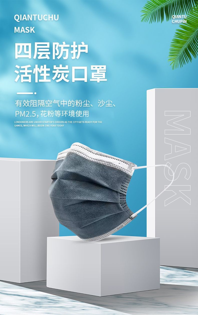 4중 보호 활성탄 일회용 마스크 귀걸이형 산업용 먼지 방지 장식 냄새 방지 두꺼운 종저우 포장스토어 가기