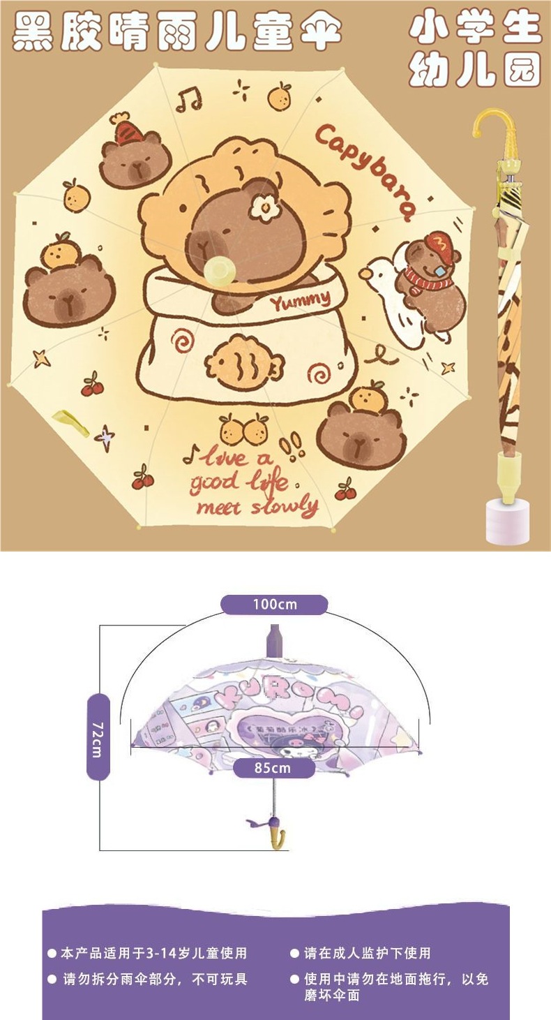 어린이, 소년 소녀를 위한 카피바라 우산, 초등학생을 위한 귀여운 긴 손잡이 우산, 비닐 자외선 차단제, 자외선 차단 우산