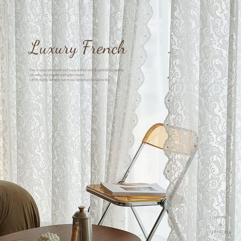 봄 국경 새로운 로맨틱 자카드 커튼 프랑스 구슬 비 천공 막대 완성 빛스토어 가기