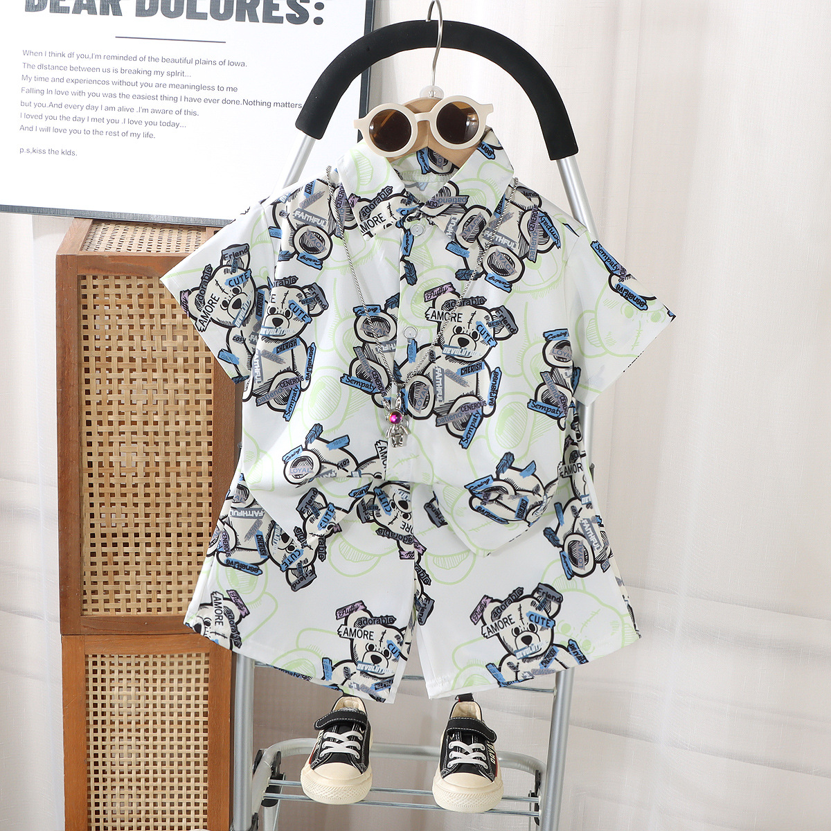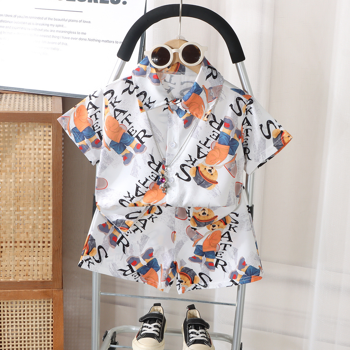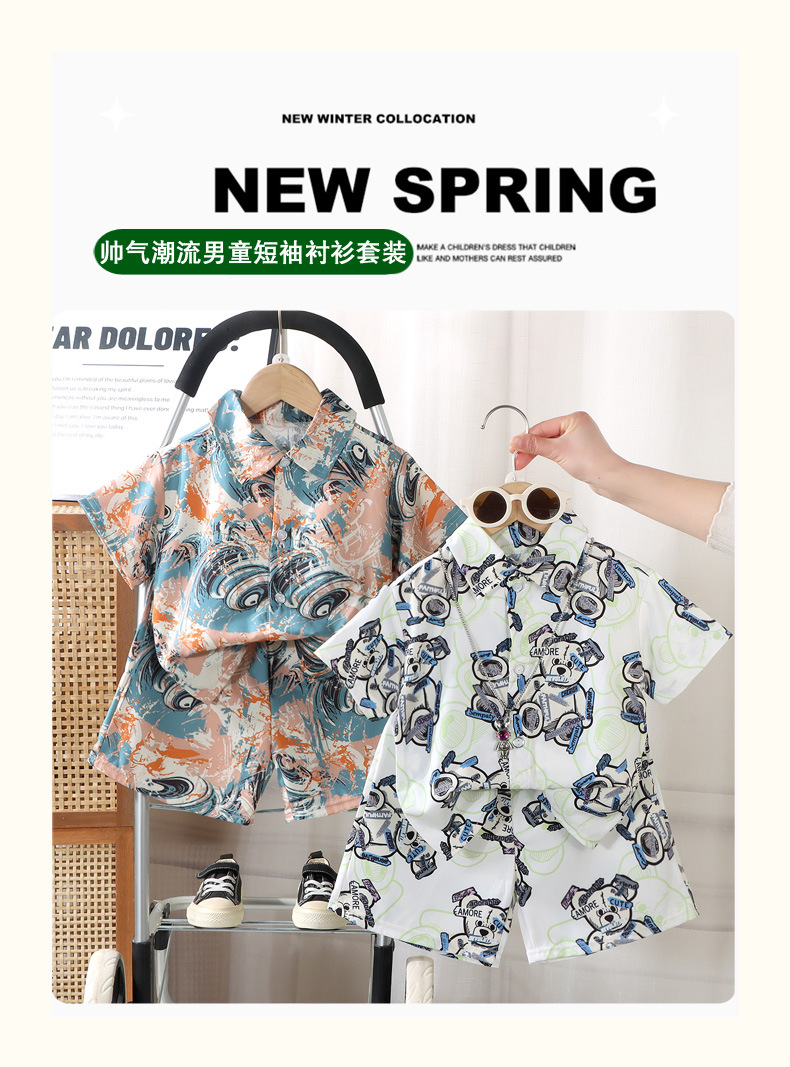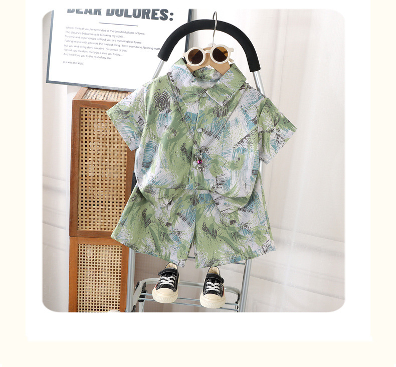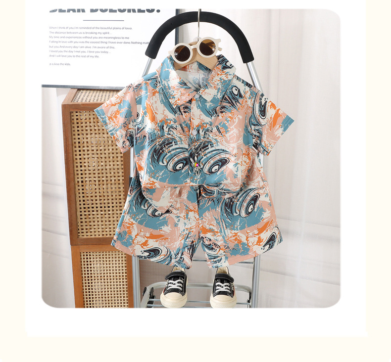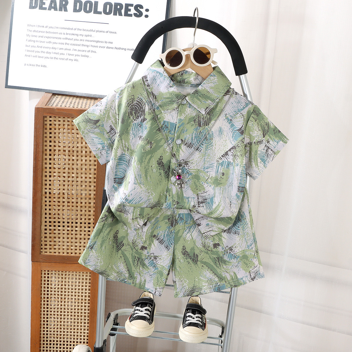 넥타이 염색 어린이 여름 패션 전체 인쇄 홍콩 스타일 셔츠 세트 소년 유행 패션 세련된 한국 짧은 소매