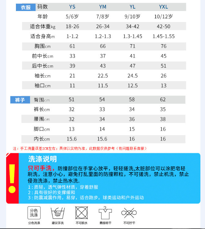 【重量】长袖:198g/件;短袖:170g/件;短裤:160g/件