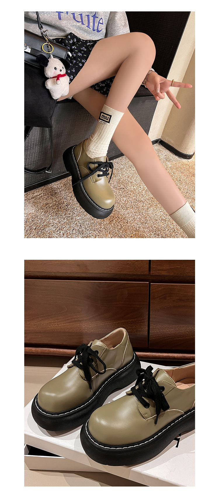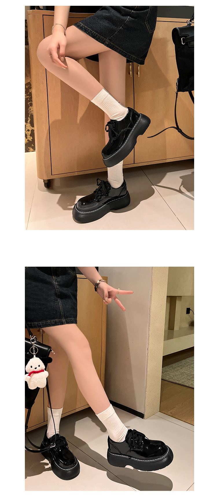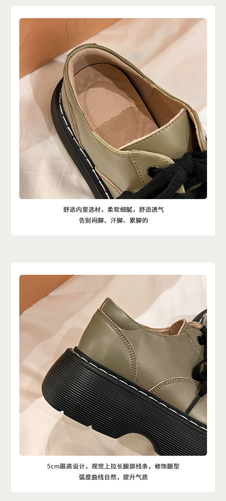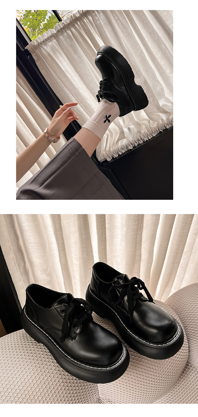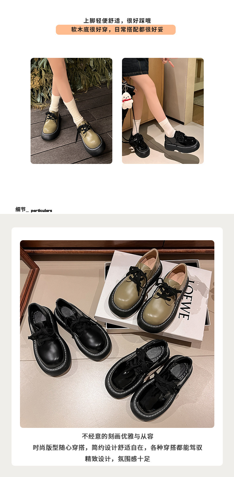 여성용 로퍼 2024 봄 두꺼운 밑창 높이 증가 영국 JK 스타일 레이스 업 대학 작은 가죽 신발 다용도 캐주얼 신발스토어 가기
