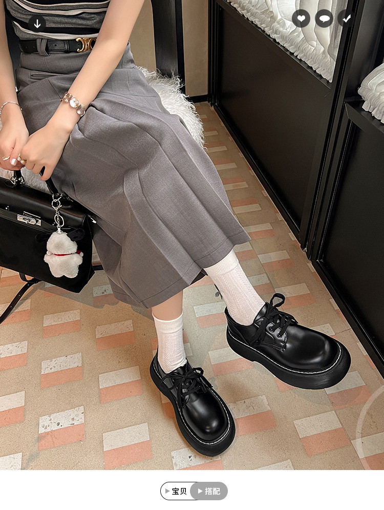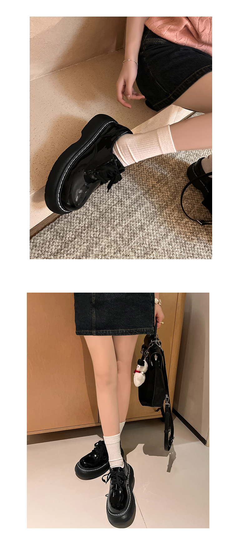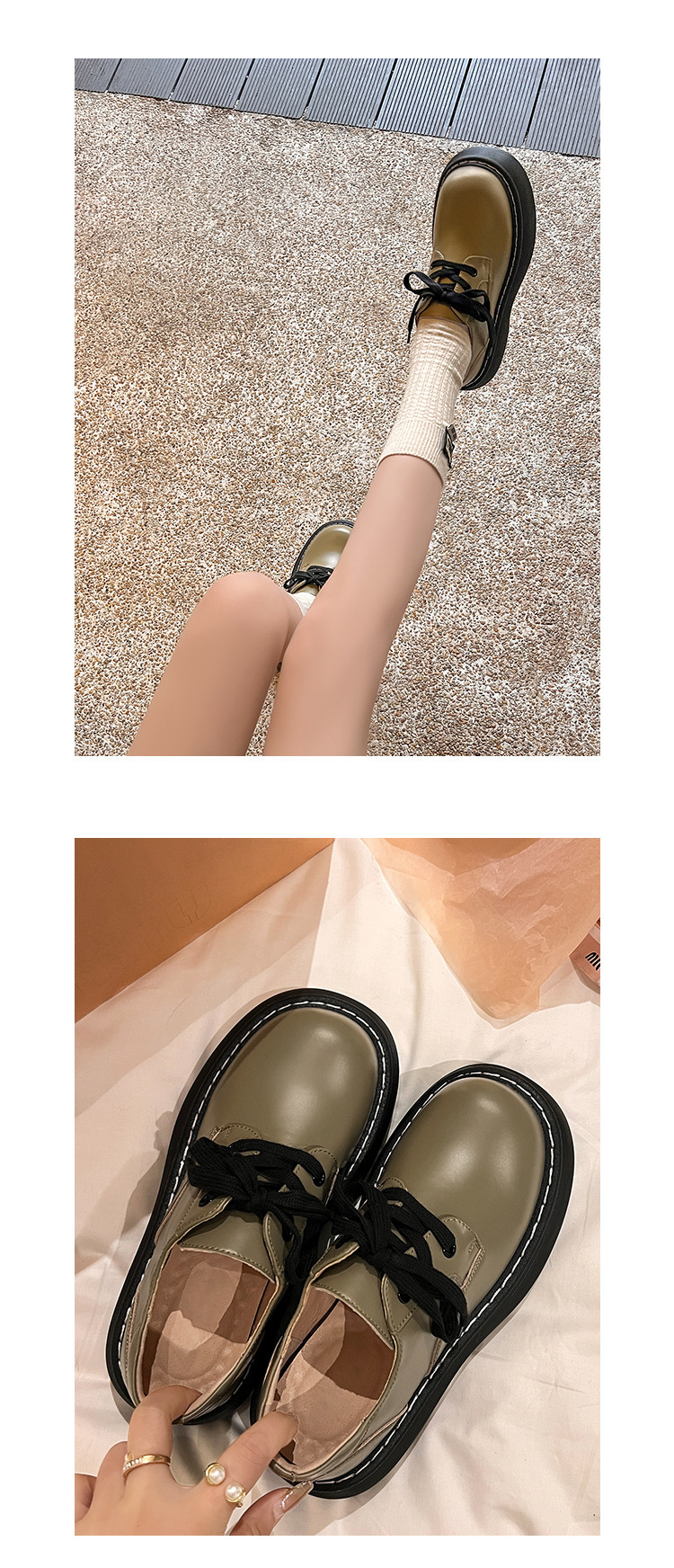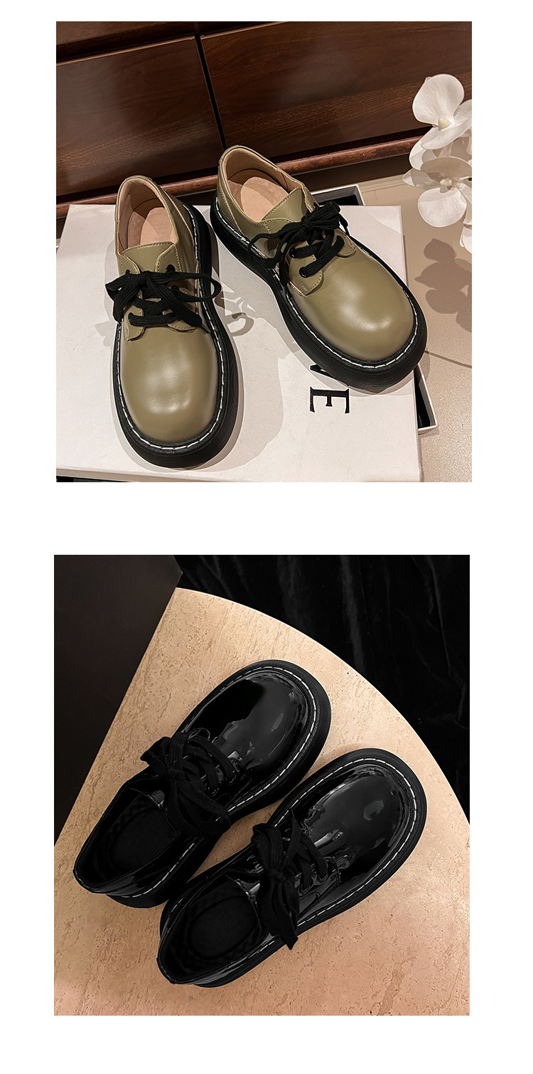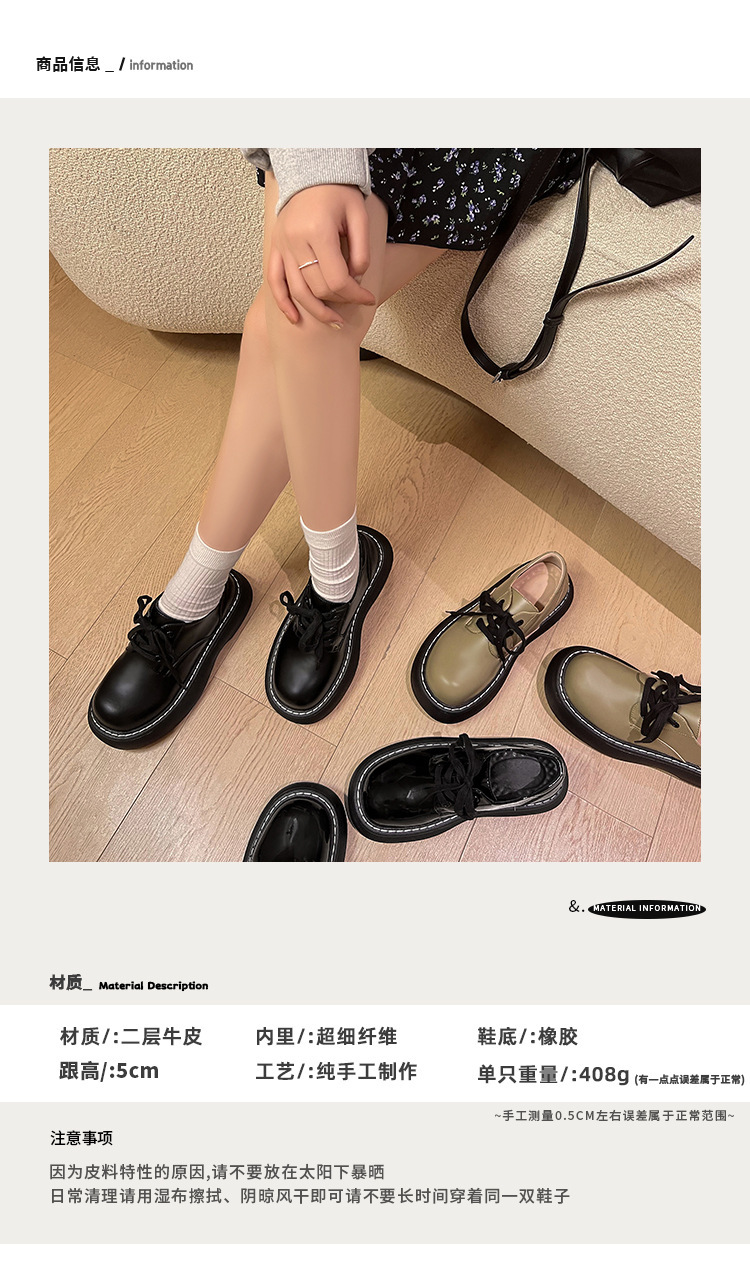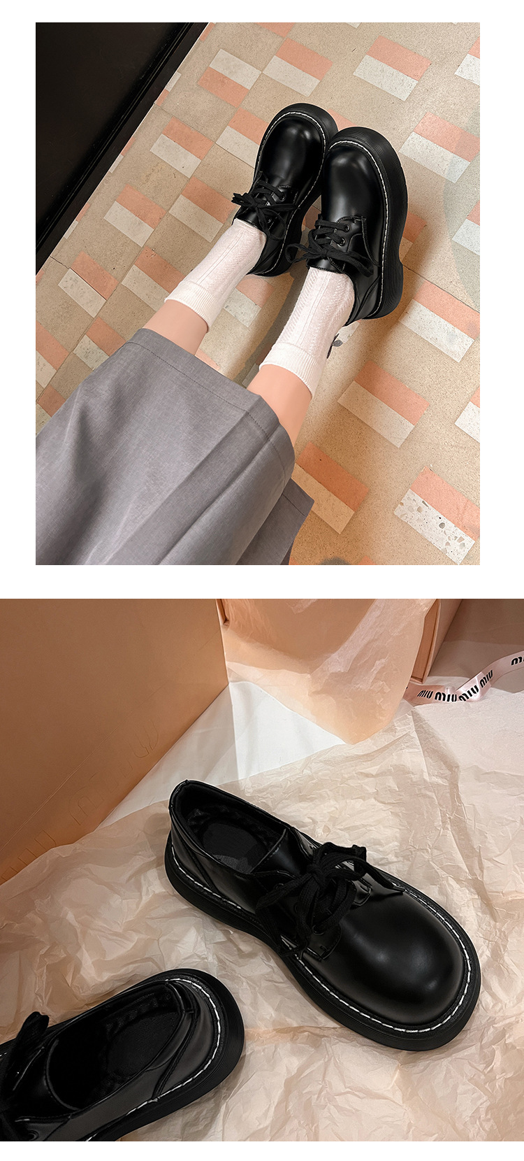 여성용 로퍼 2024 봄 두꺼운 밑창 높이 증가 영국 JK 스타일 레이스 업 대학 작은 가죽 신발 다용도 캐주얼 신발스토어 가기