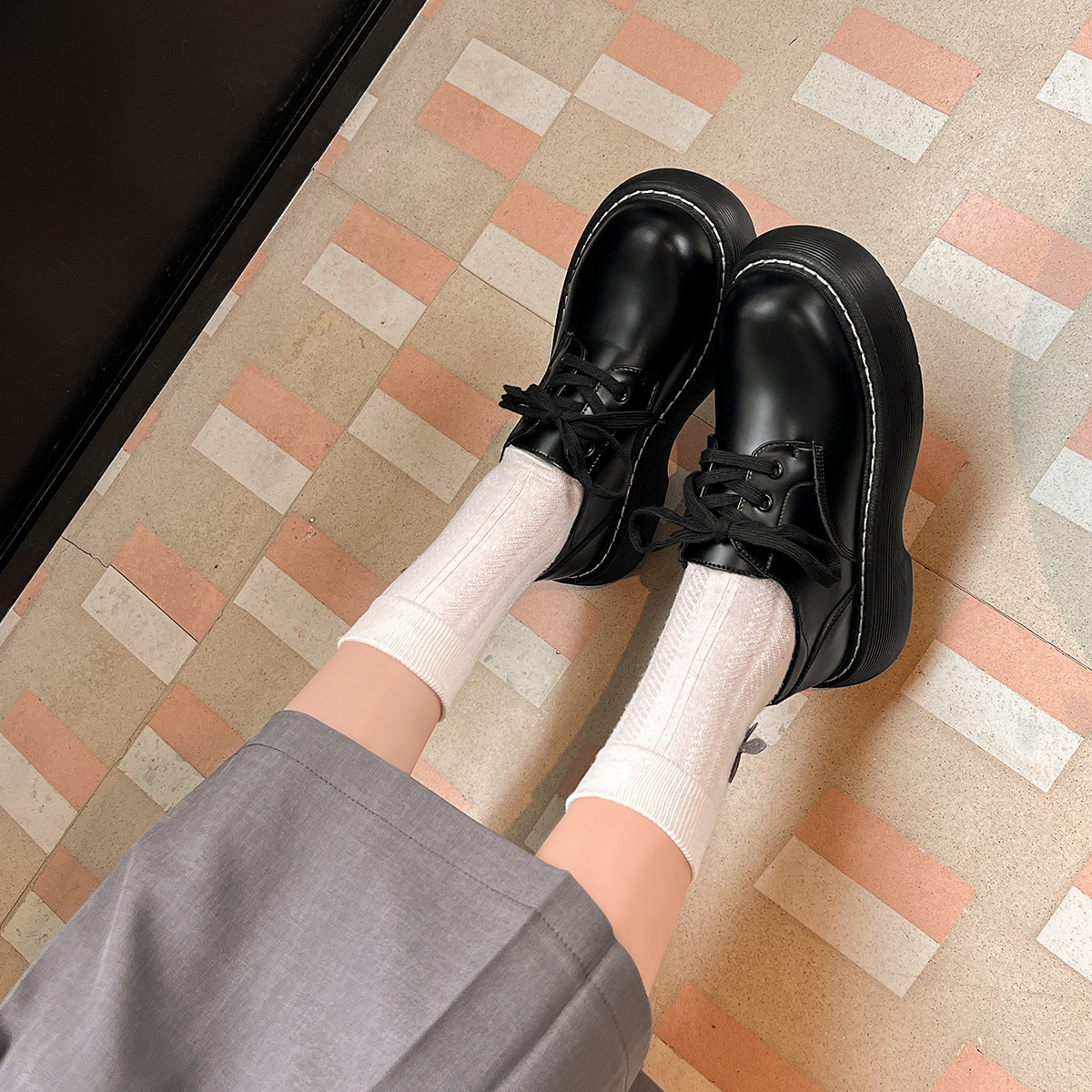 여성용 로퍼 2024 봄 두꺼운 밑창 높이 증가 영국 JK 스타일 레이스 업 대학 작은 가죽 신발 다용도 캐주얼 신발