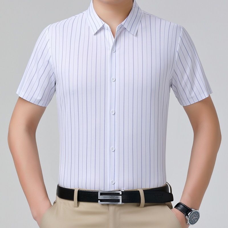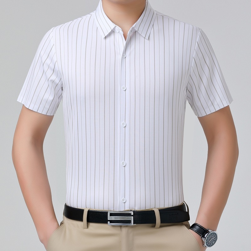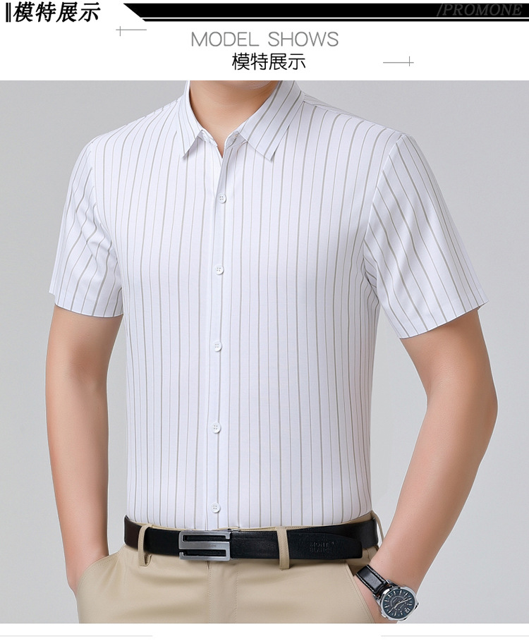 브랜드 반팔 셔츠 남자의 여름 얇은 캐주얼 줄무늬 비 주름 방지 뽕나무 실크 중년 아빠 셔츠스토어 가기