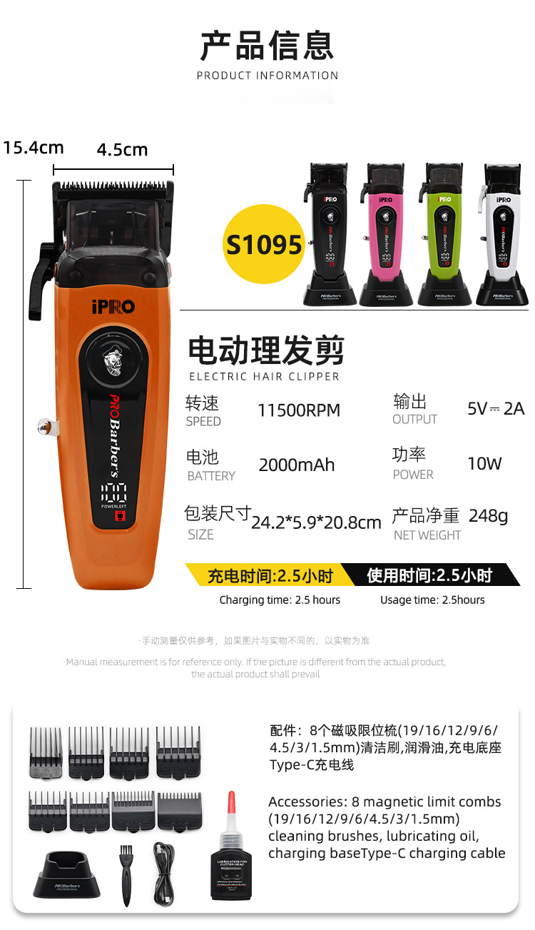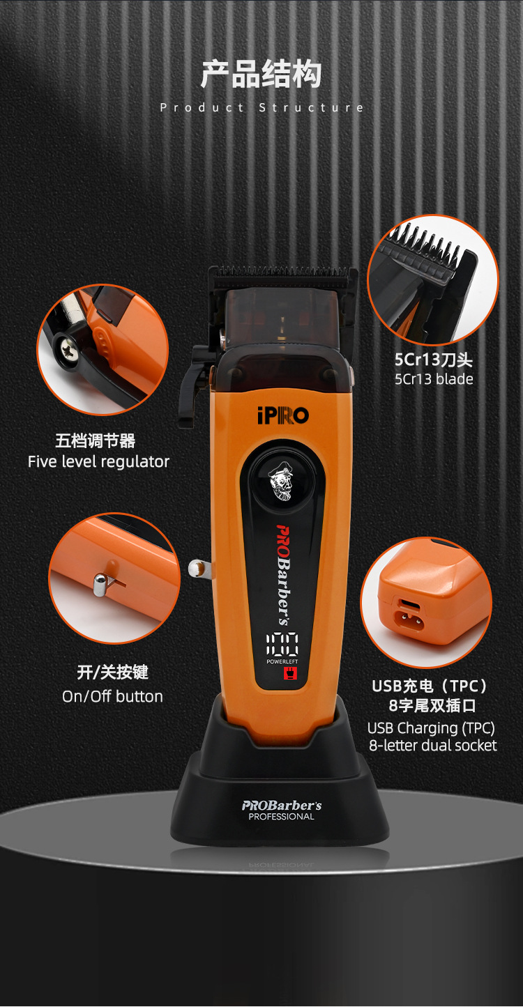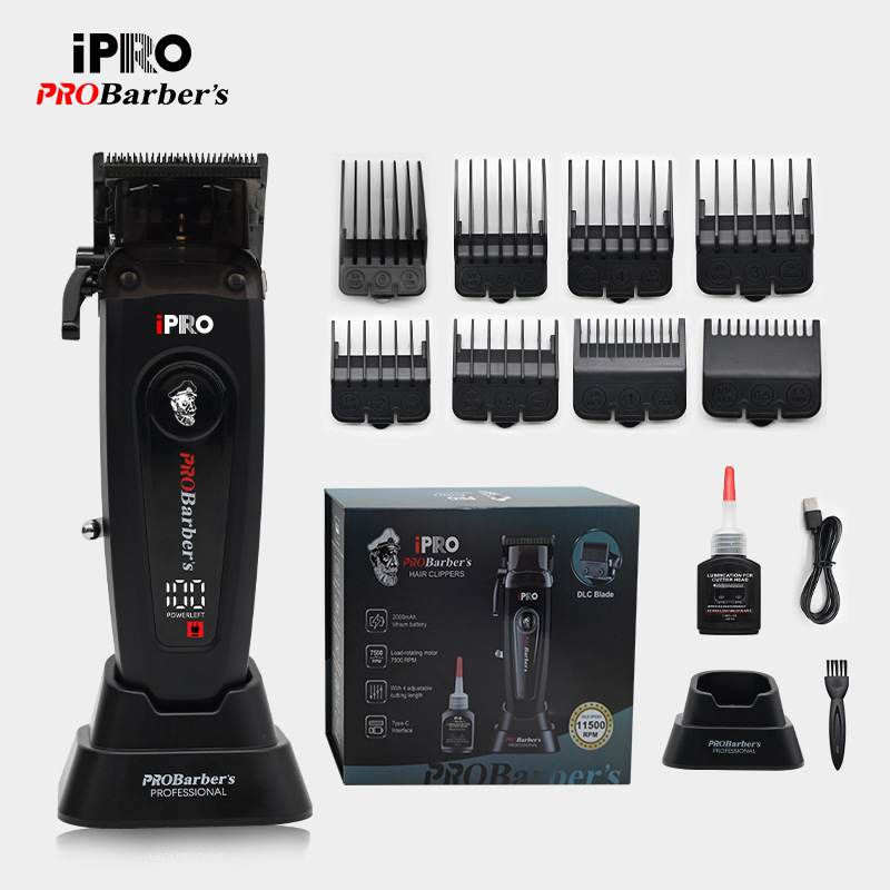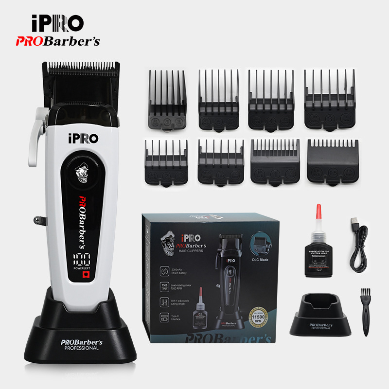 IPRO 새로운 10,000 회전 디지털 디스플레이 전문 이발기 전기 클리퍼 DLC 칼 헤어 살롱 같은 스타일 오일 헤드 클리퍼