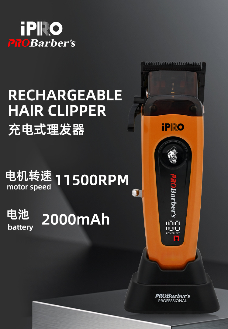 IPRO 새로운 10,000 회전 디지털 디스플레이 전문 이발기 전기 클리퍼 DLC 칼 헤어 살롱 같은 스타일 오일 헤드 클리퍼스토어 가기