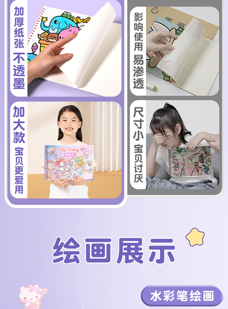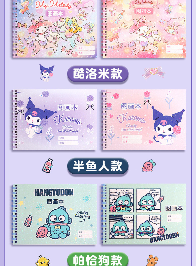 정품 산리오 A4 코일 그림책 어린이 초등학교 유치원 아트 북 페인팅 책 두껍게 스케치 책