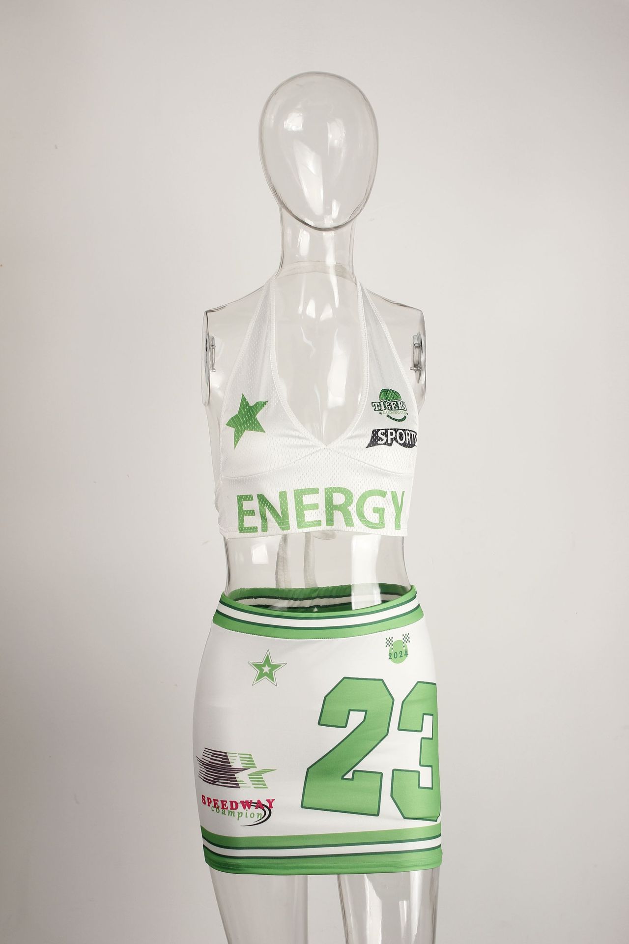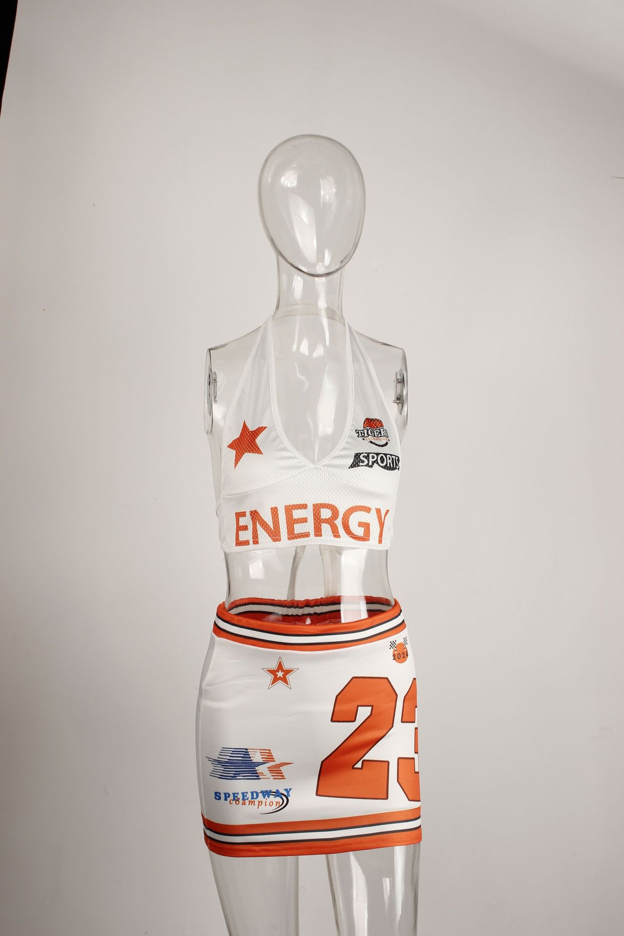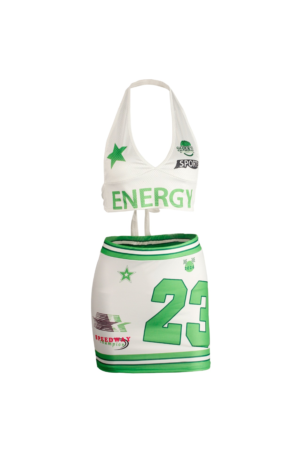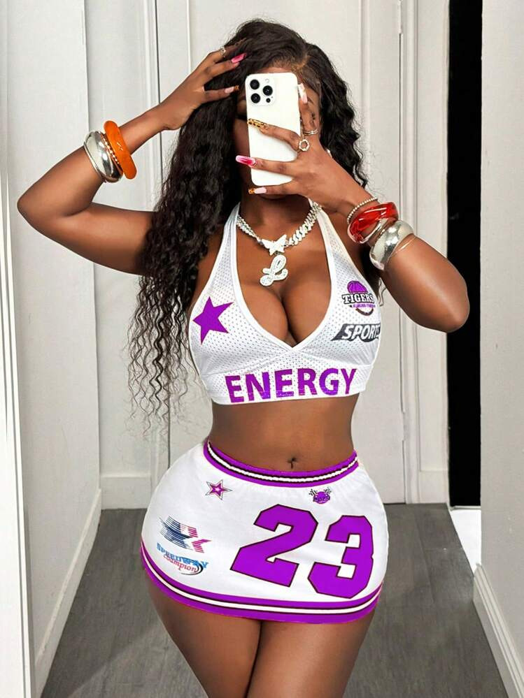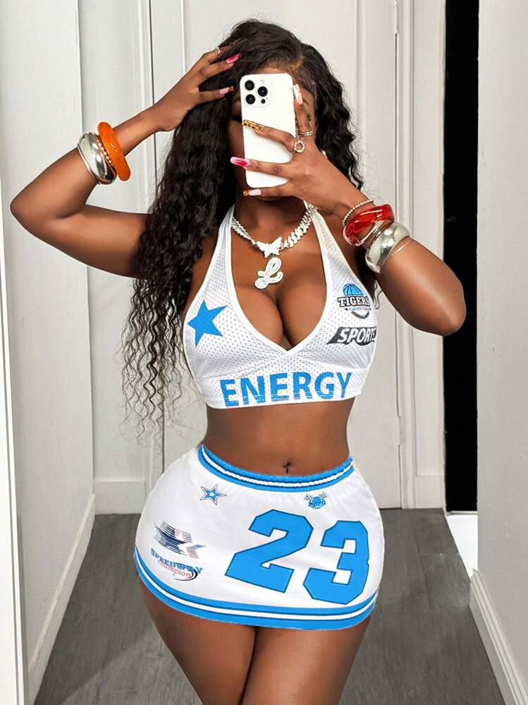 2025 새로운 여름 국경 유럽과 미국의 섹시한 뜨거운 소녀 목에 매달린 탑 비치 스트랩 디자인 스커트 세트 여성스토어 가기