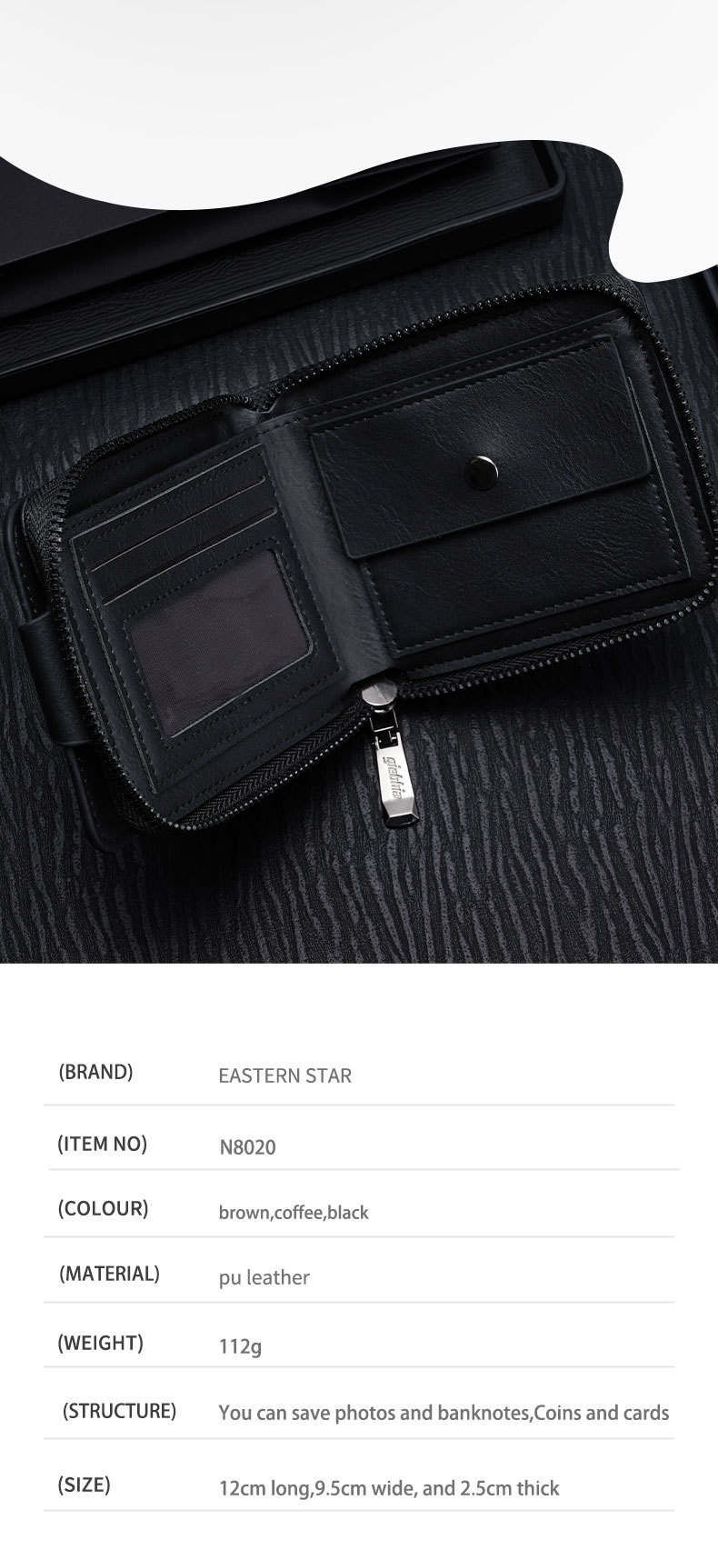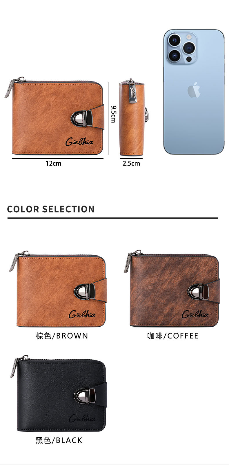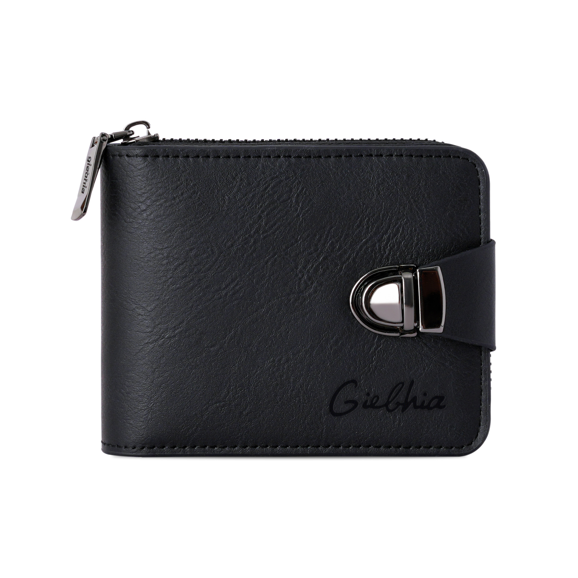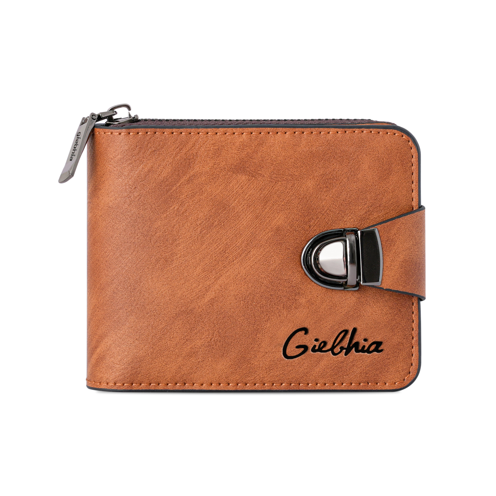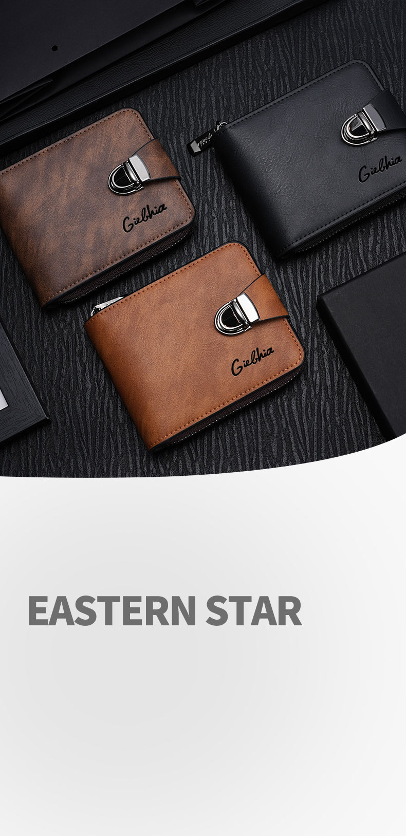 GIEBHIA 남성 지갑 짧은 지퍼 가방 대용량 멀티 카드 슬롯 작은 가방 사업 빈티지 동전 지갑