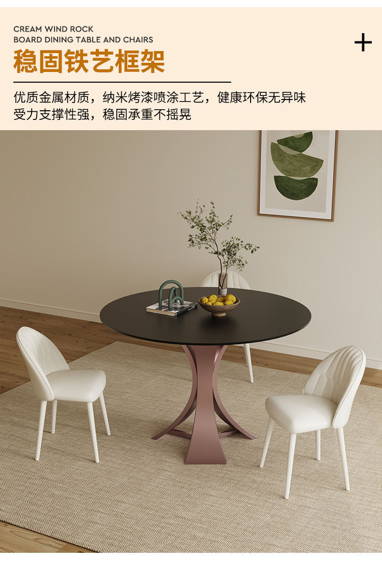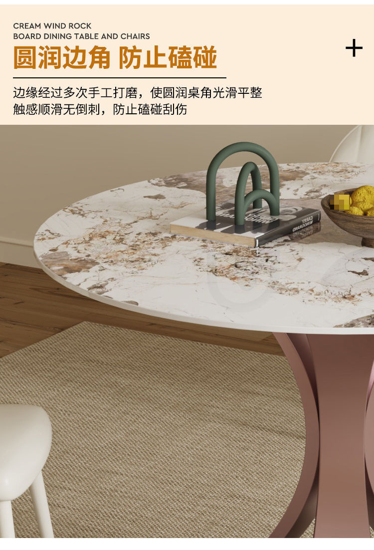 ∝ 라운드 식탁 새로운 스타일의 편안한 슬레이트 식탁 순수한 흰색 거실 간단한 아이보리 화이트 스타일 작은 아파트 식탁 새로운