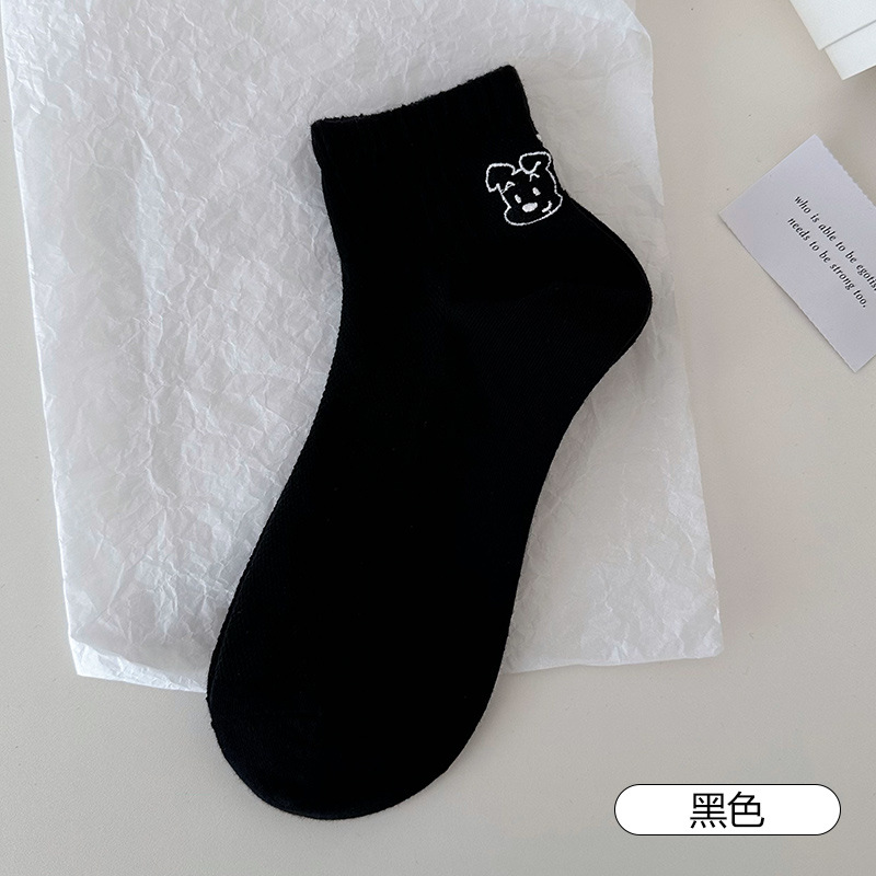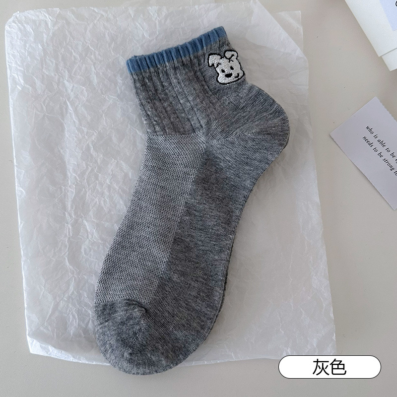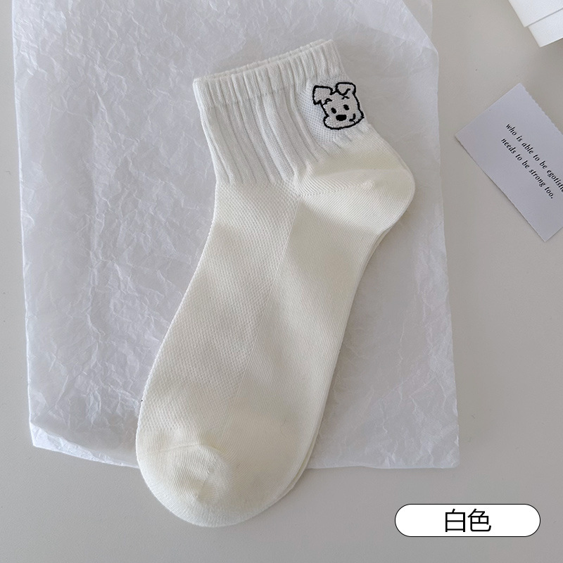 도트 원사 양말 여성 인 스타일 만화 자수 강아지 편지 AB 짧은 양말 빈 메쉬 통기성 캐주얼 양말